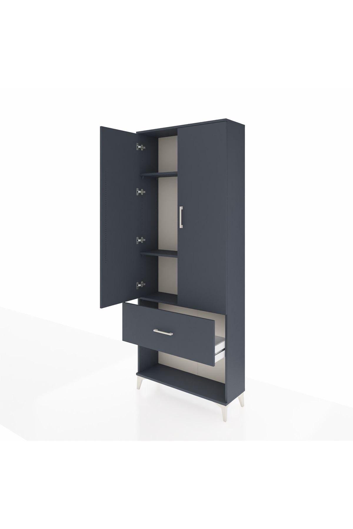 Arges Dolap 3 Raflı Tek Çekmeceli 2 Kapaklı 88x30x221 Antrasit-Antrasit