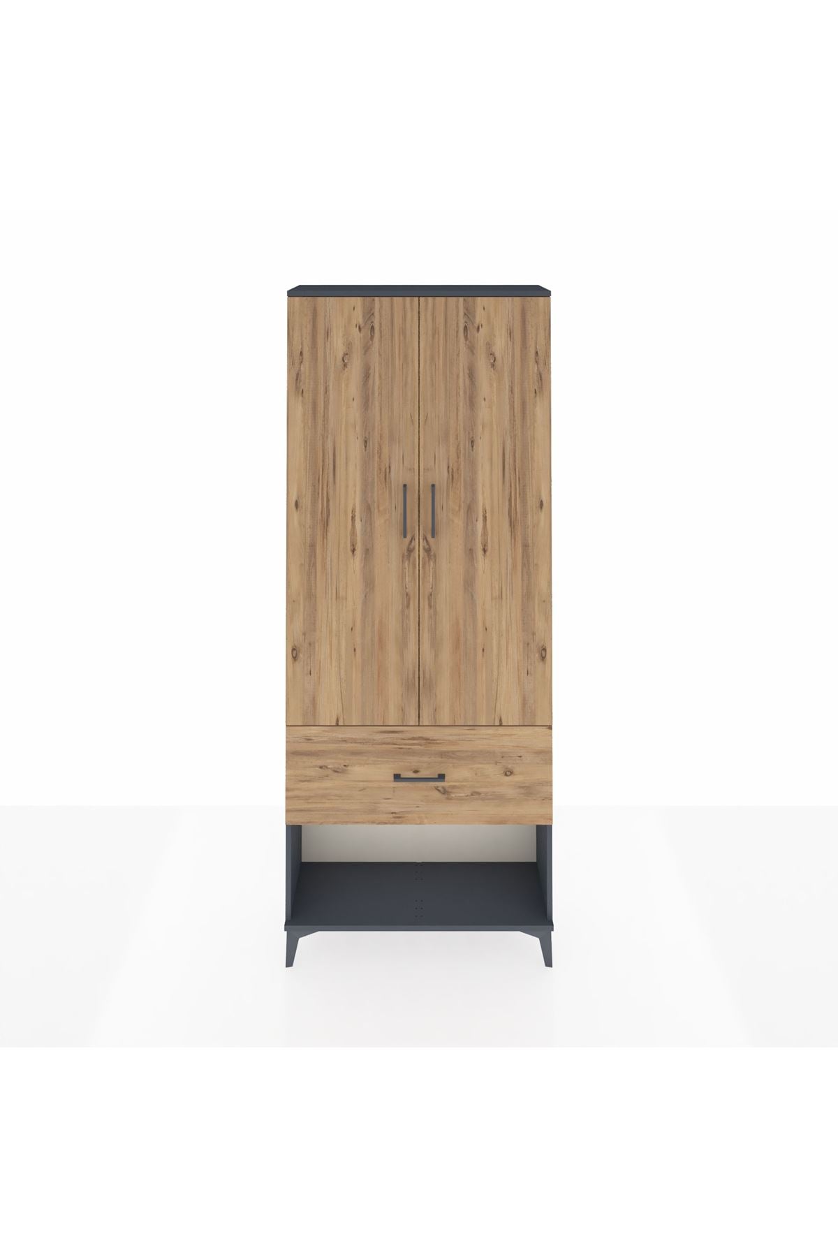 Arges Dolap 3 Raflı Tek Çekmeceli 2 Kapaklı 88x30x221 Antrasit-Çam