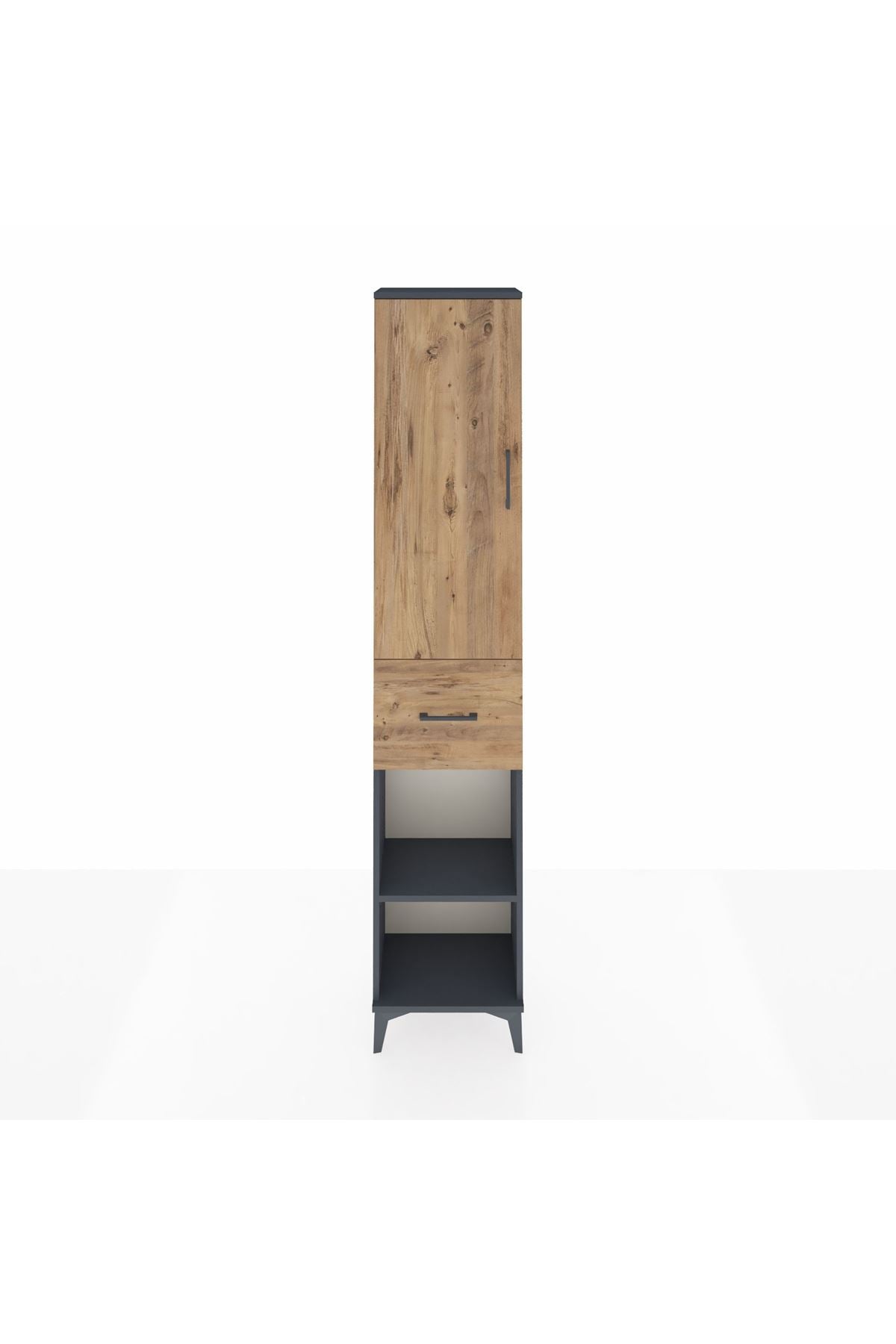 Arges Dolap 3 Raflı Tek Çekmeceli Tek Askılı 44x30x221 Antrasit-Çam