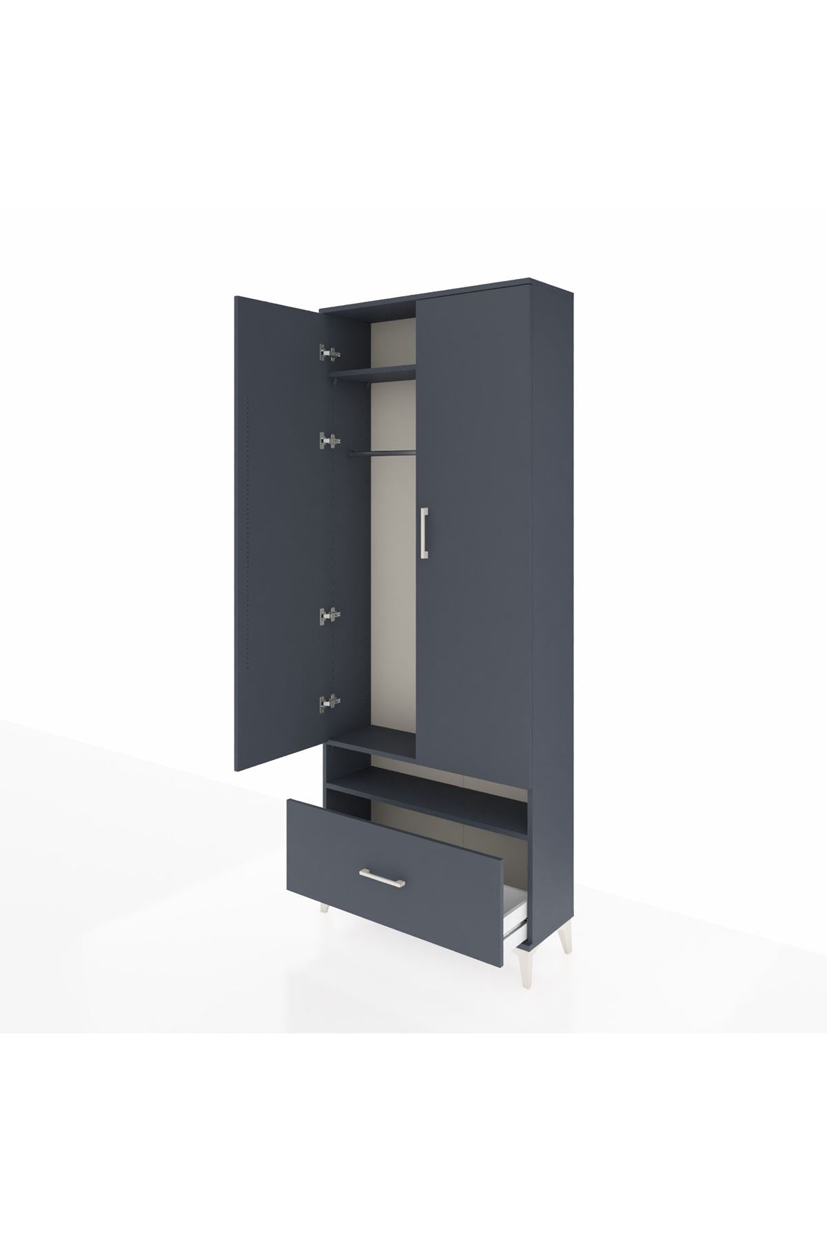 Arges Dolap 3 Raflı Tek Çekmeceli Tek Askılı 88x30x221 Antrasit-Antrasit