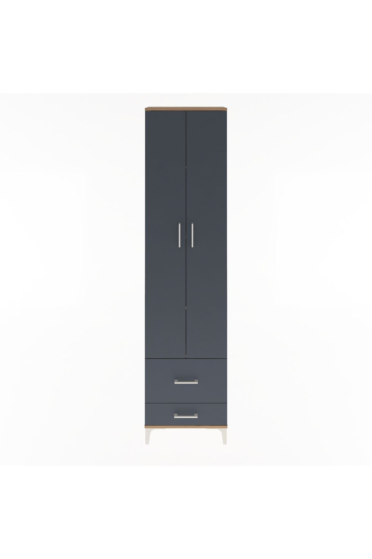 Arges Dolap 4 Raflı 2 Çekmeceli 2 Kapaklı 60x30x243 Çam-Antrasit