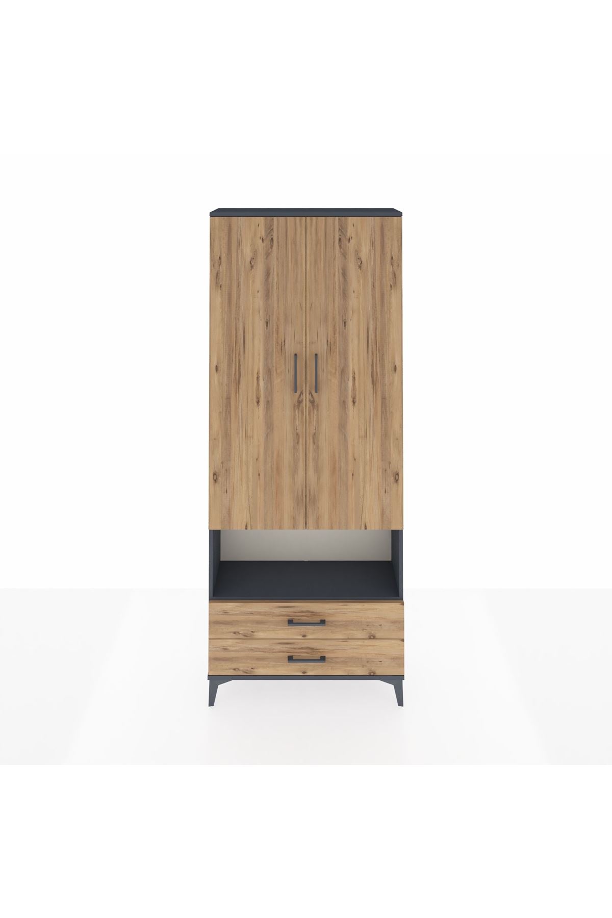 Arges Dolap 4 Raflı 2 Çekmeceli 2 Kapaklı 88x30x221 Antrasit-Çam