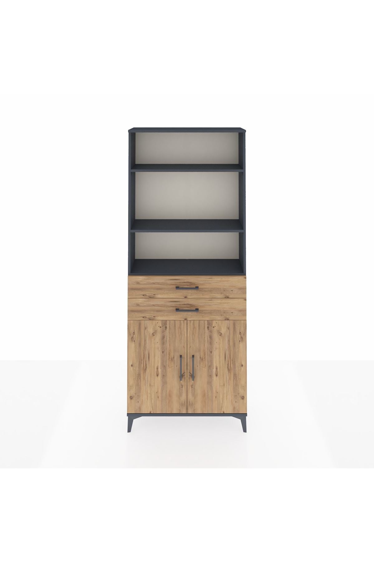 Arges Dolap 4 Raflı 2 Çekmeceli 2 Kapaklı 88x30x221 Antrasit-Çam
