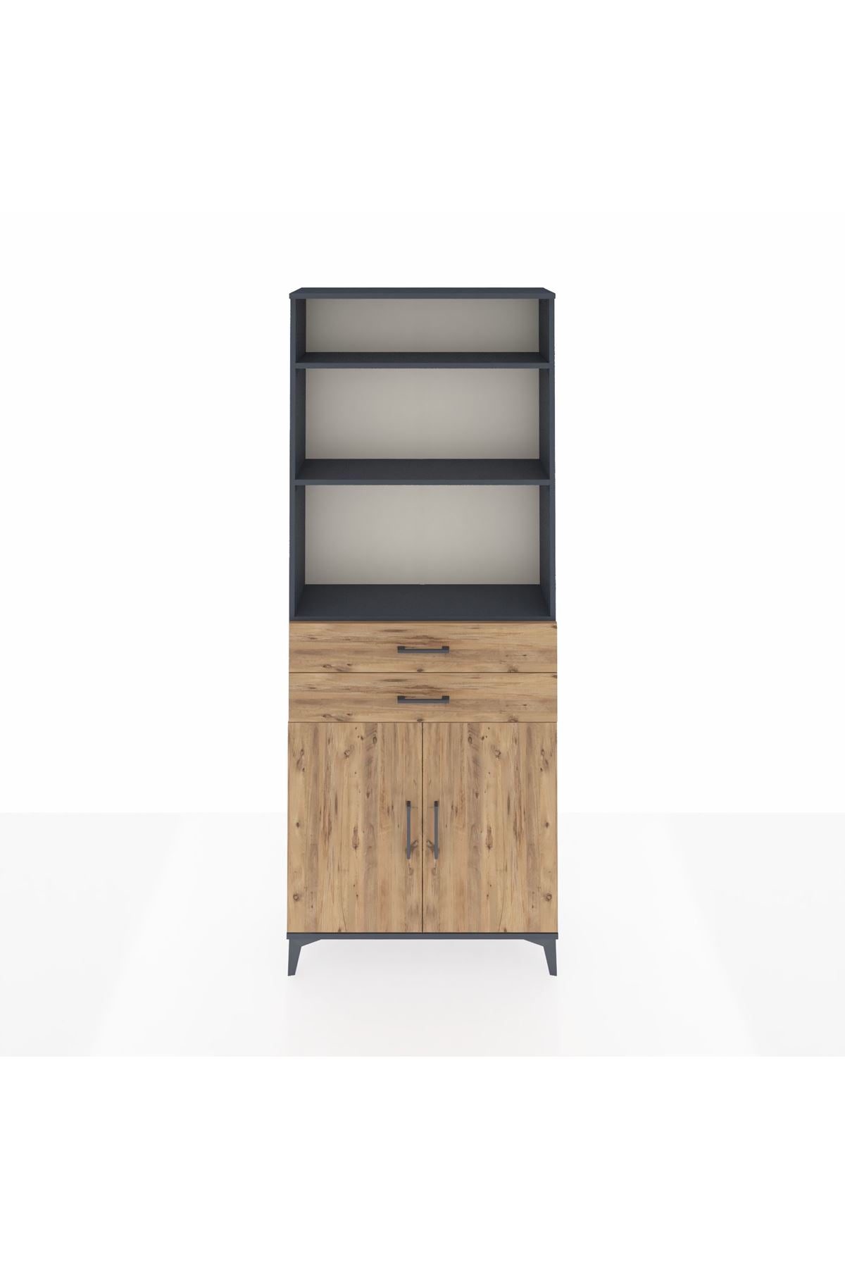 Arges Dolap 4 Raflı 2 Çekmeceli 2 Kapaklı 88x30x221 Antrasit-Çam