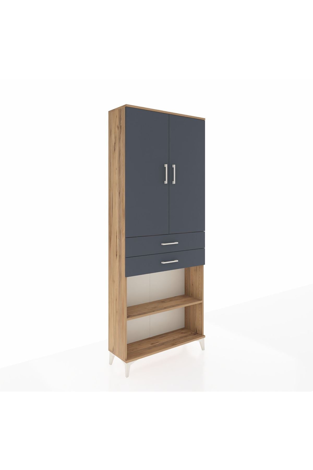 Arges Dolap 4 Raflı 2 Çekmeceli 2 Kapaklı 88x30x221 Çam-Antrasit