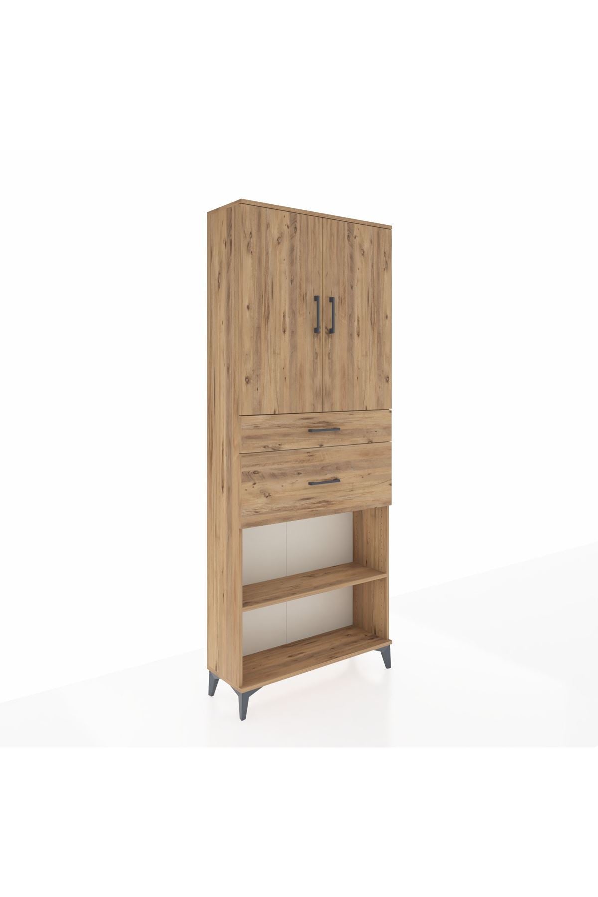 Arges Dolap 4 Raflı 2 Çekmeceli 2 Kapaklı 88x30x221 Çam-Çam