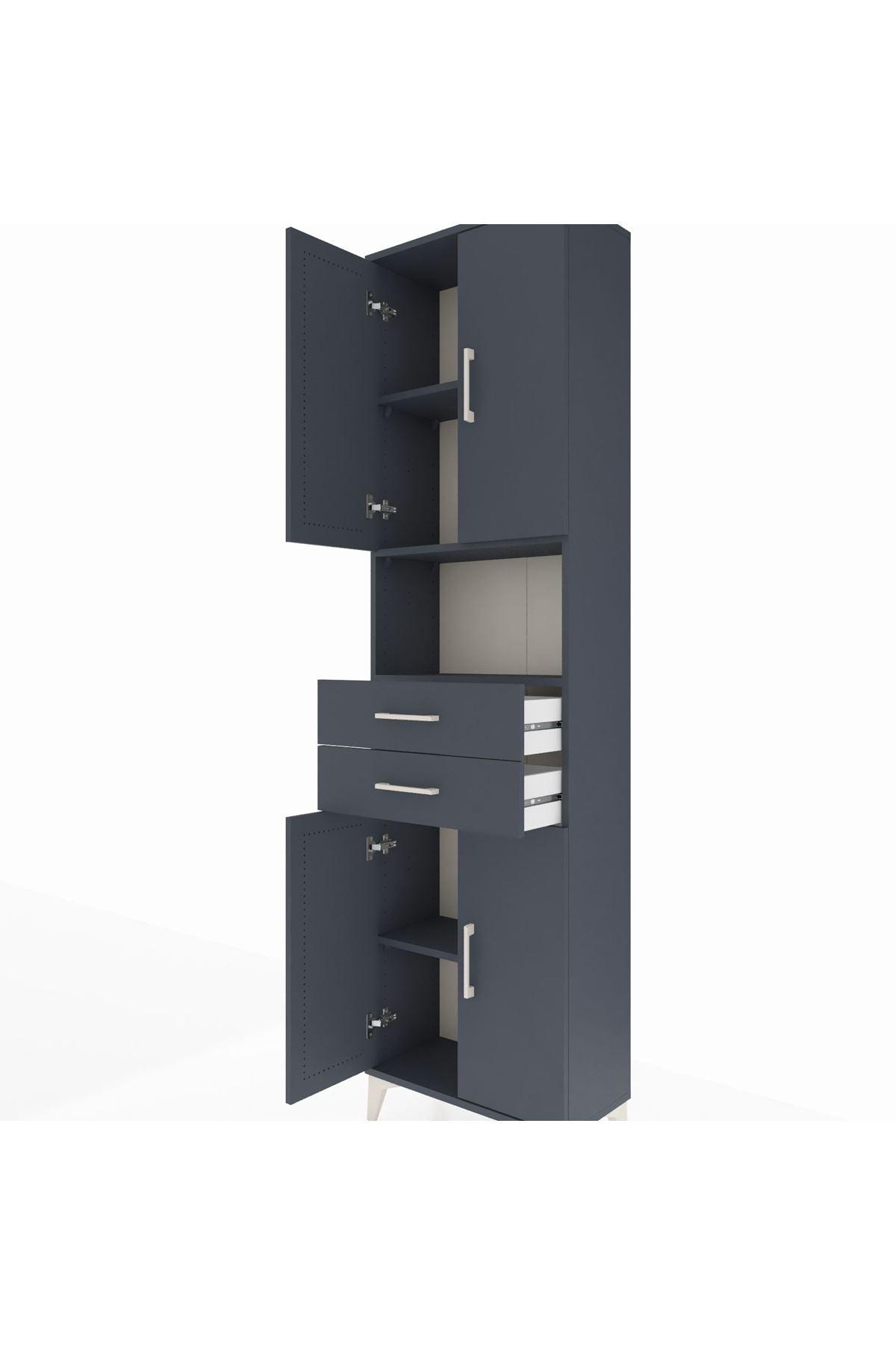 Arges Dolap 4 Raflı 2 Çekmeceli 4 Kapaklı 60x30x221 Antrasit-Antrasit