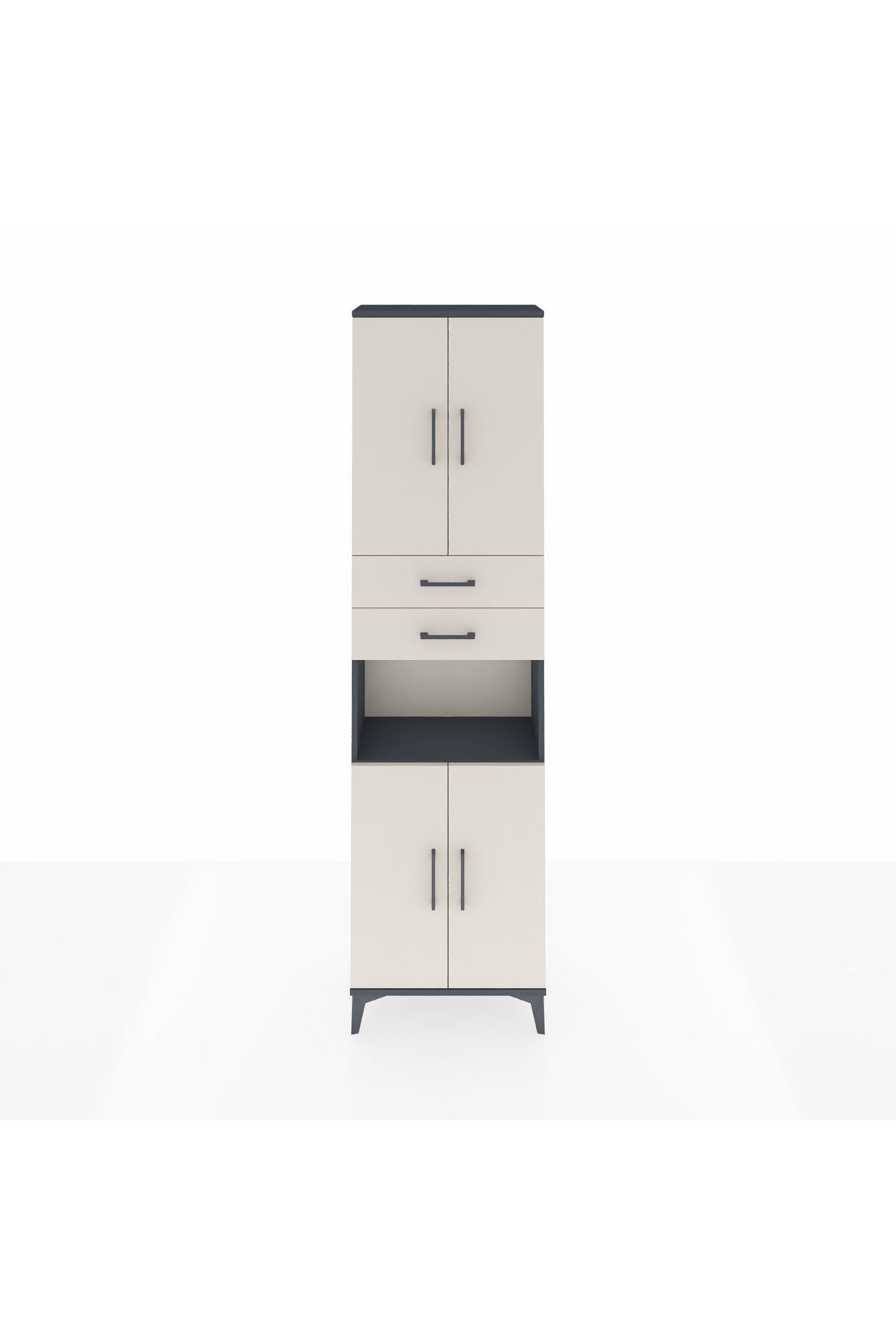 Arges Dolap 4 Raflı 2 Çekmeceli 4 Kapaklı 60x30x221 Antrasit-Aytaşı