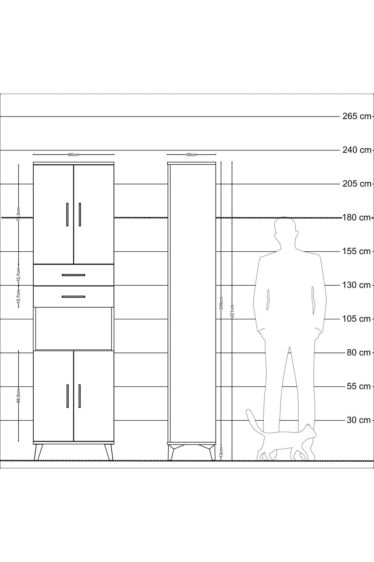 Arges Dolap 4 Raflı 2 Çekmeceli 4 Kapaklı 60x30x221 Çam-Aytaşı