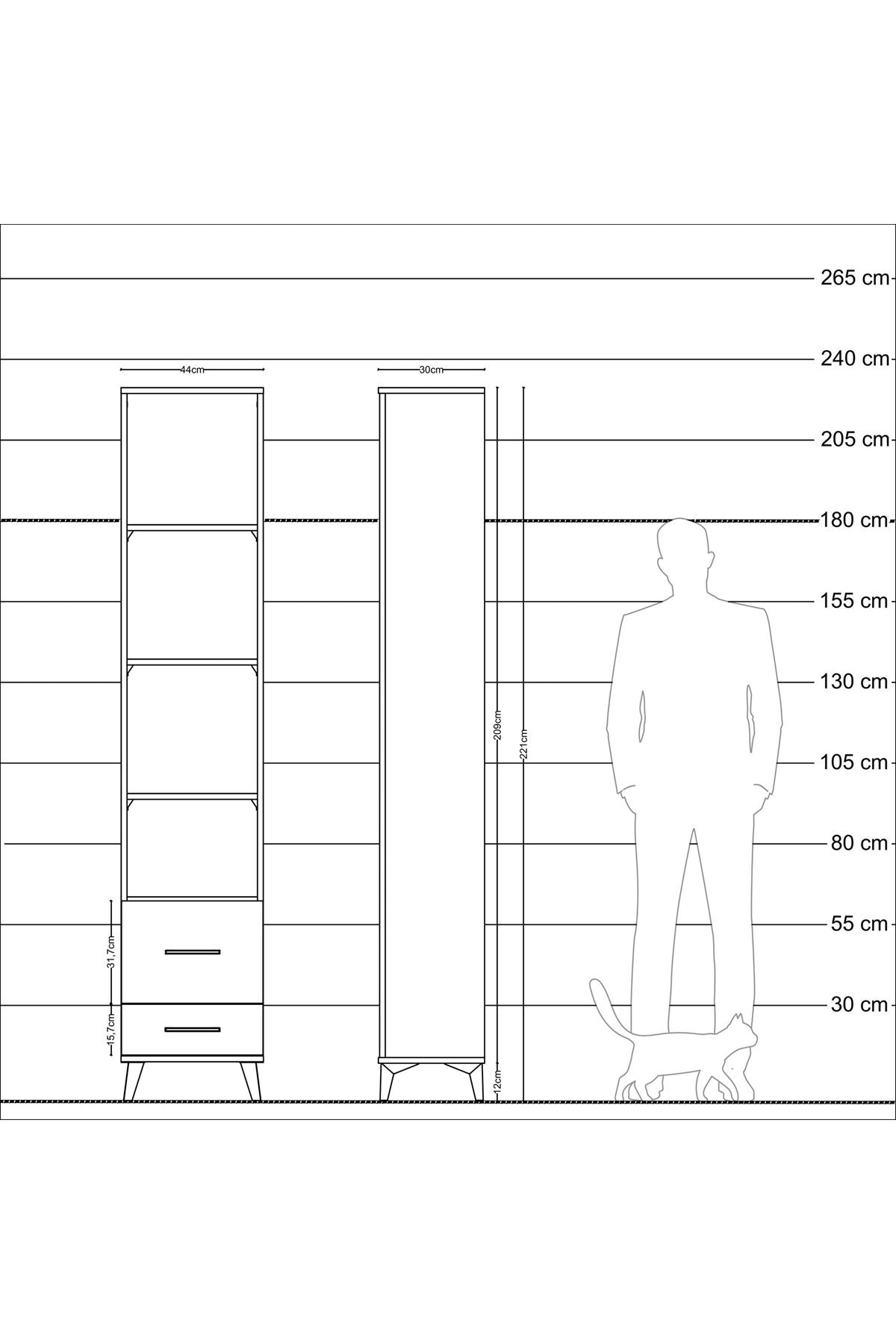 Arges Dolap 4 Raflı 2 Çekmeceli 44x30x221 Çam-Çam