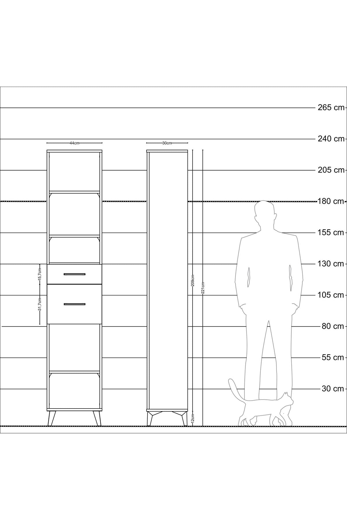 Arges Dolap 4 Raflı 2 Çekmeceli 44x30x221 Çam-Çam