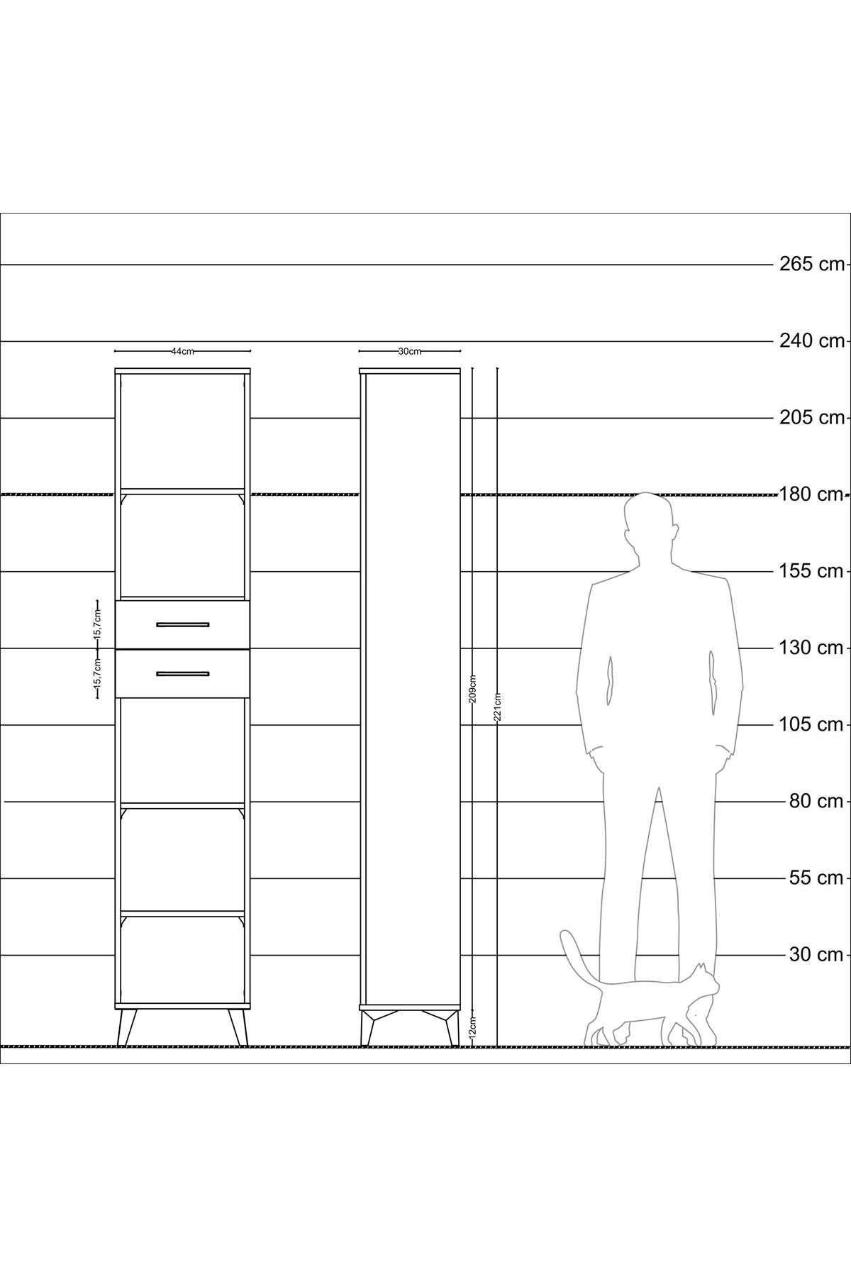 Genişlik: 44 cm, Derinlik: 30 cm, Yükseklik: 221 cm