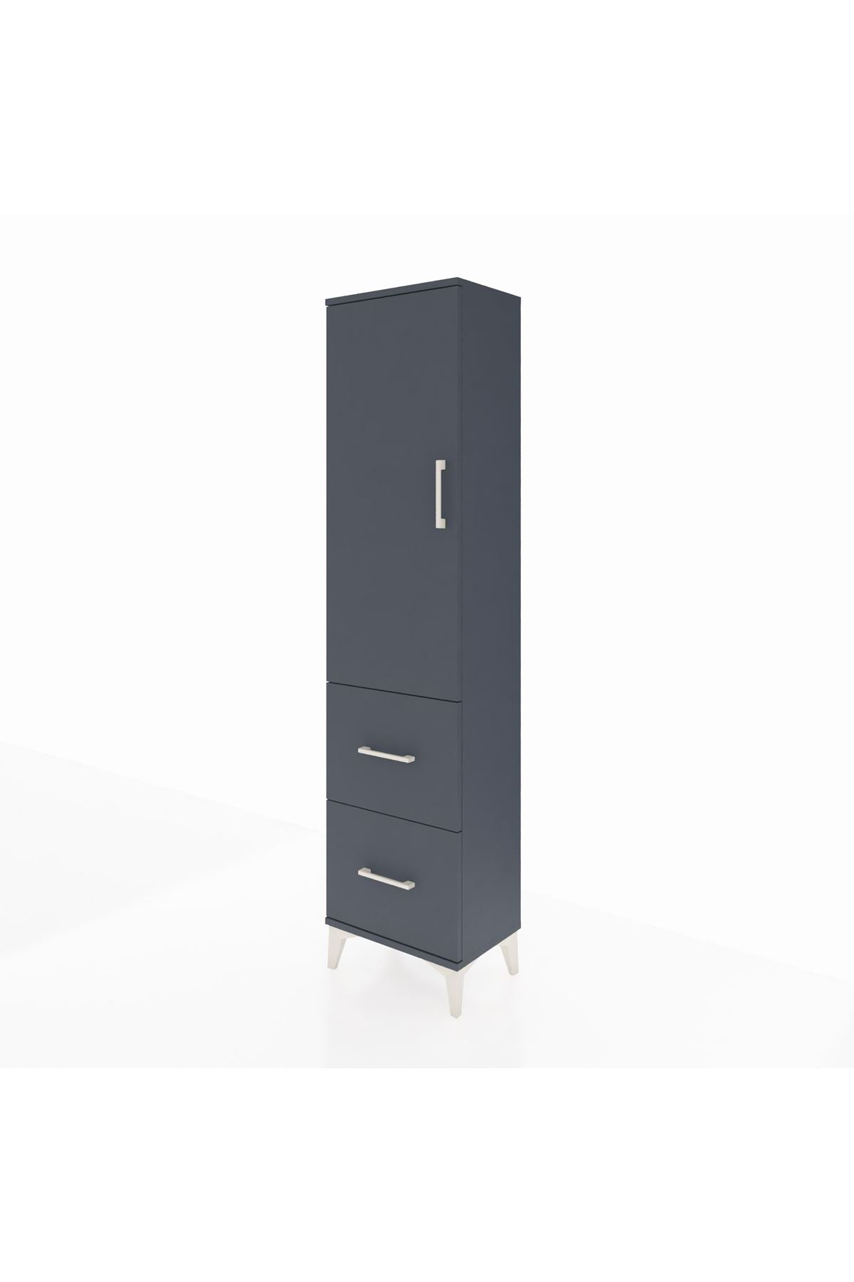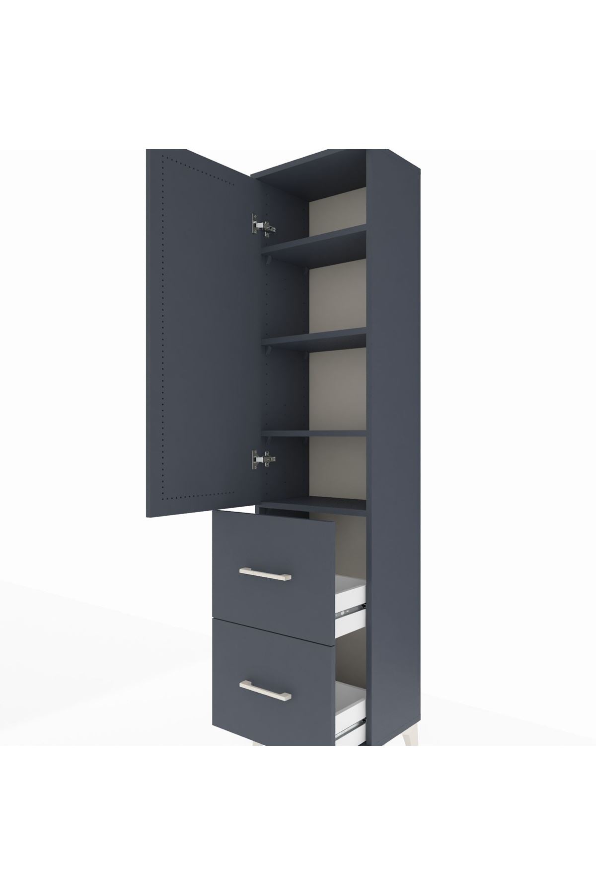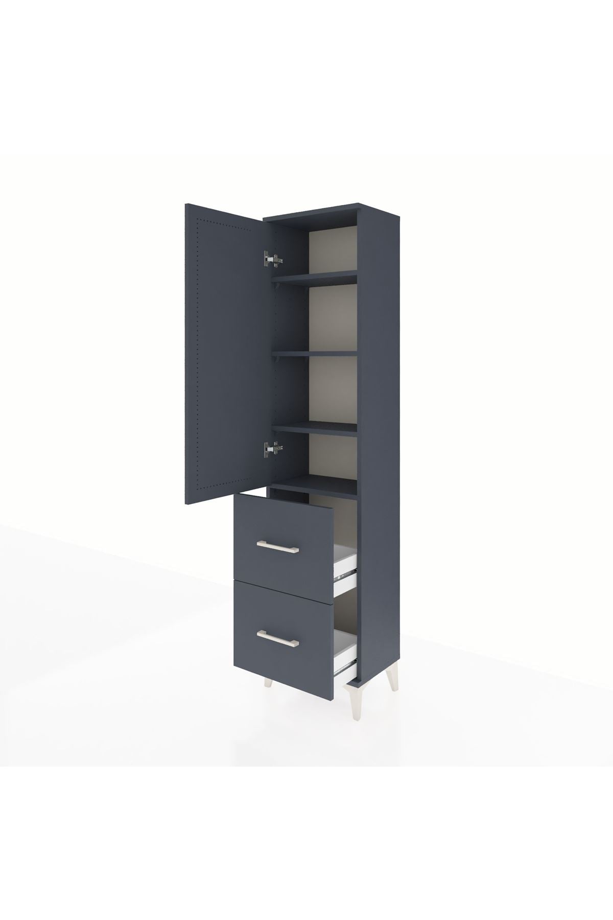 Arges Dolap 4 Raflı 2 Çekmeceli Tek Kapaklı 44x30x182 Antrasit-Antrasit