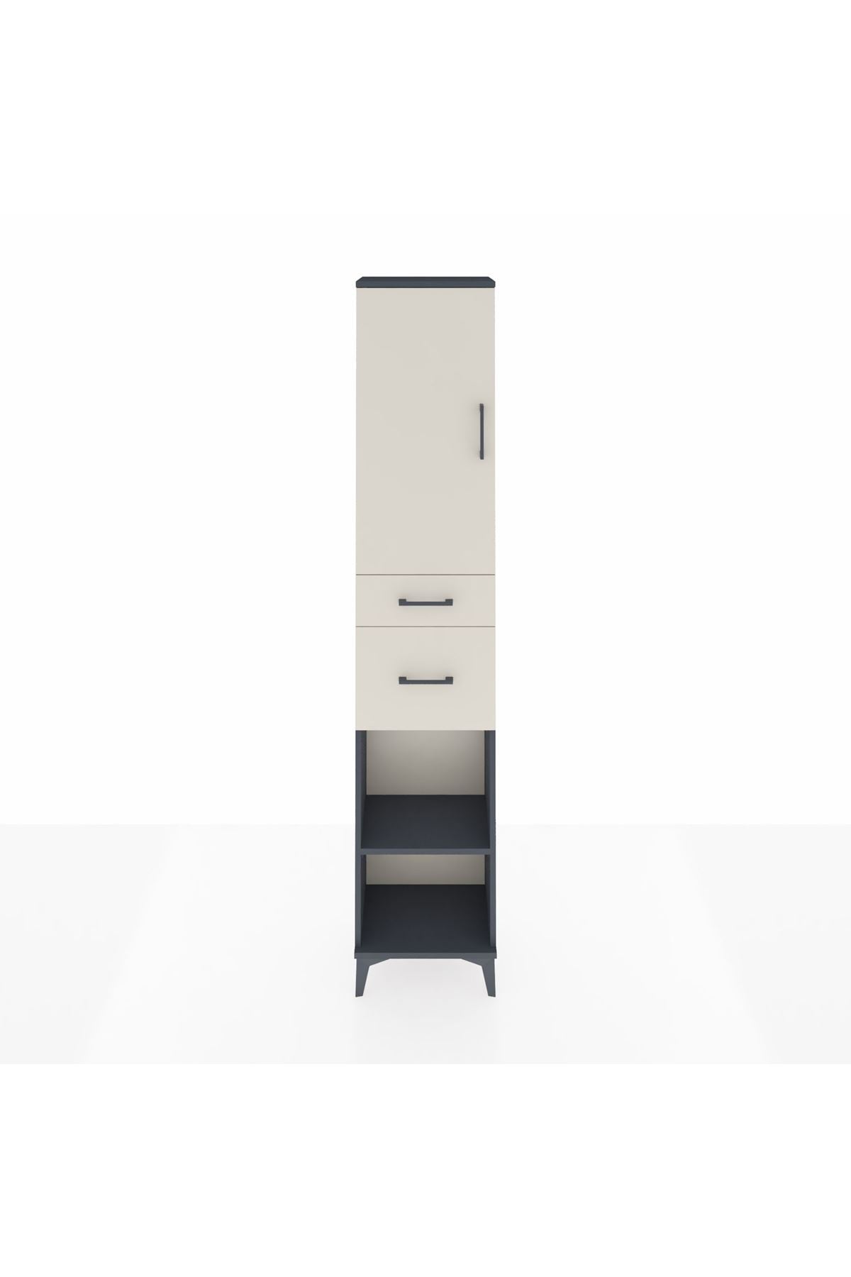 ✨ Arges Dolap 4 Raflı 2 Çekmeceli Tek Kapaklı modeli, 44x30x221 ölçüleriyle Antrasit-Aytaşı kombinasyonunun zarif kontrastını modern depolama çözümlerine taşıyor, bulunduğu alanı baştan sona şık gösteriyor.