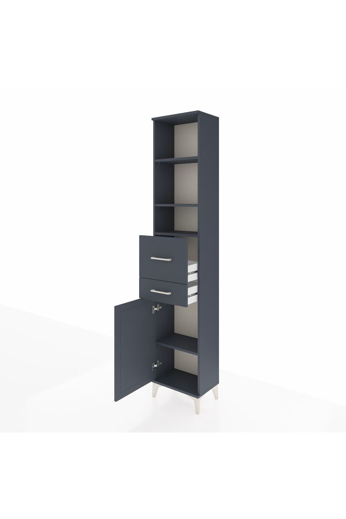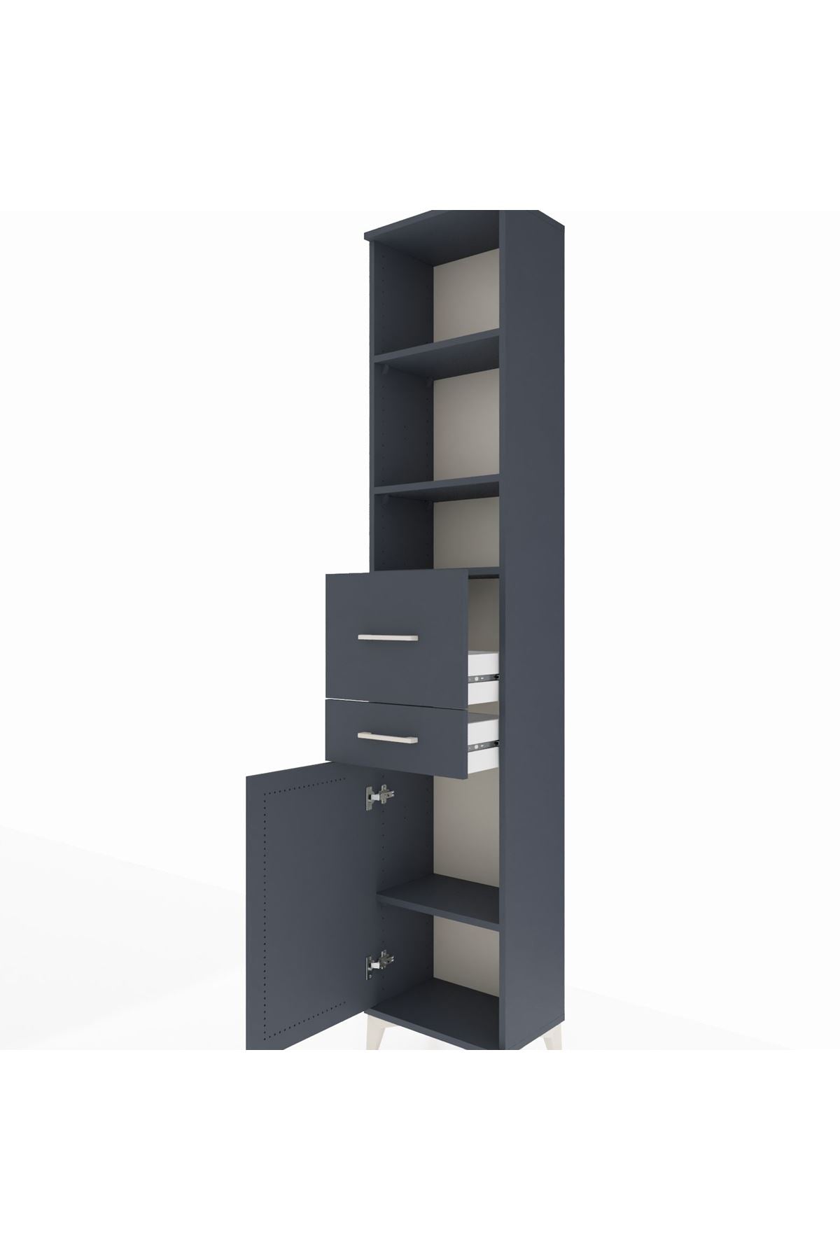 Arges Dolap 4 Raflı 2 Çekmeceli Tek Kapaklı 44x30x221 Antrasit-Antrasit