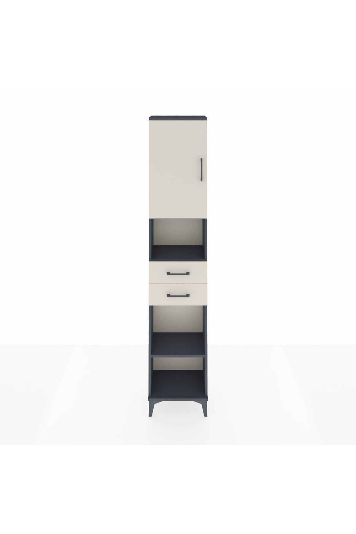 Arges Dolap 4 Raflı 2 Çekmeceli Tek Kapaklı 44x30x221 Antrasit-Aytaşı