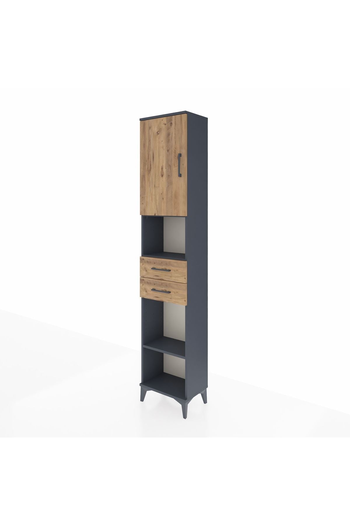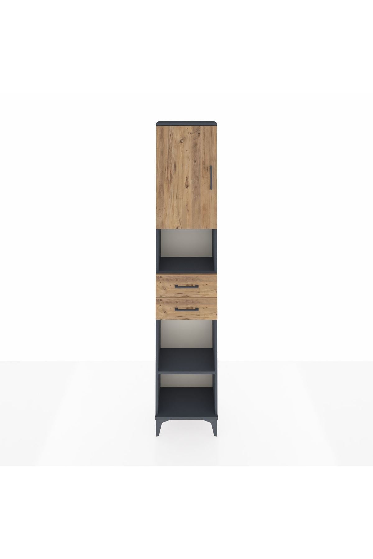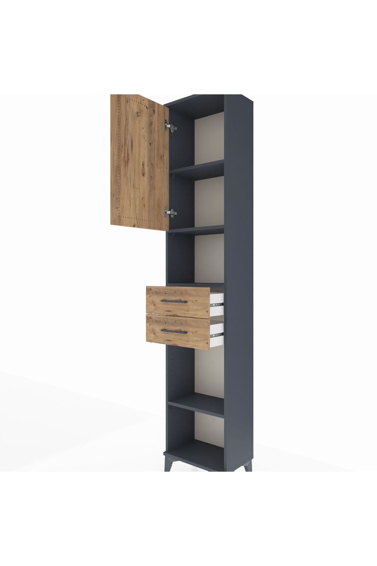 Arges Dolap 4 Raflı 2 Çekmeceli Tek Kapaklı 44x30x221 Antrasit-Çam