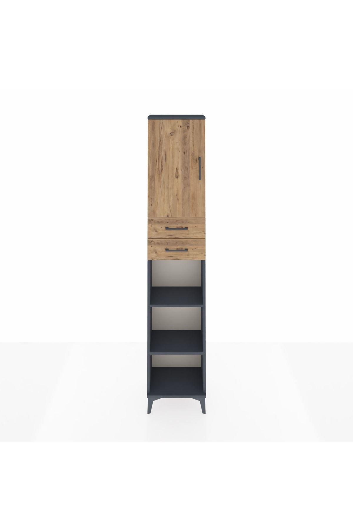 Arges Dolap 4 Raflı 2 Çekmeceli Tek Kapaklı 44x30x221 Antrasit-Çam