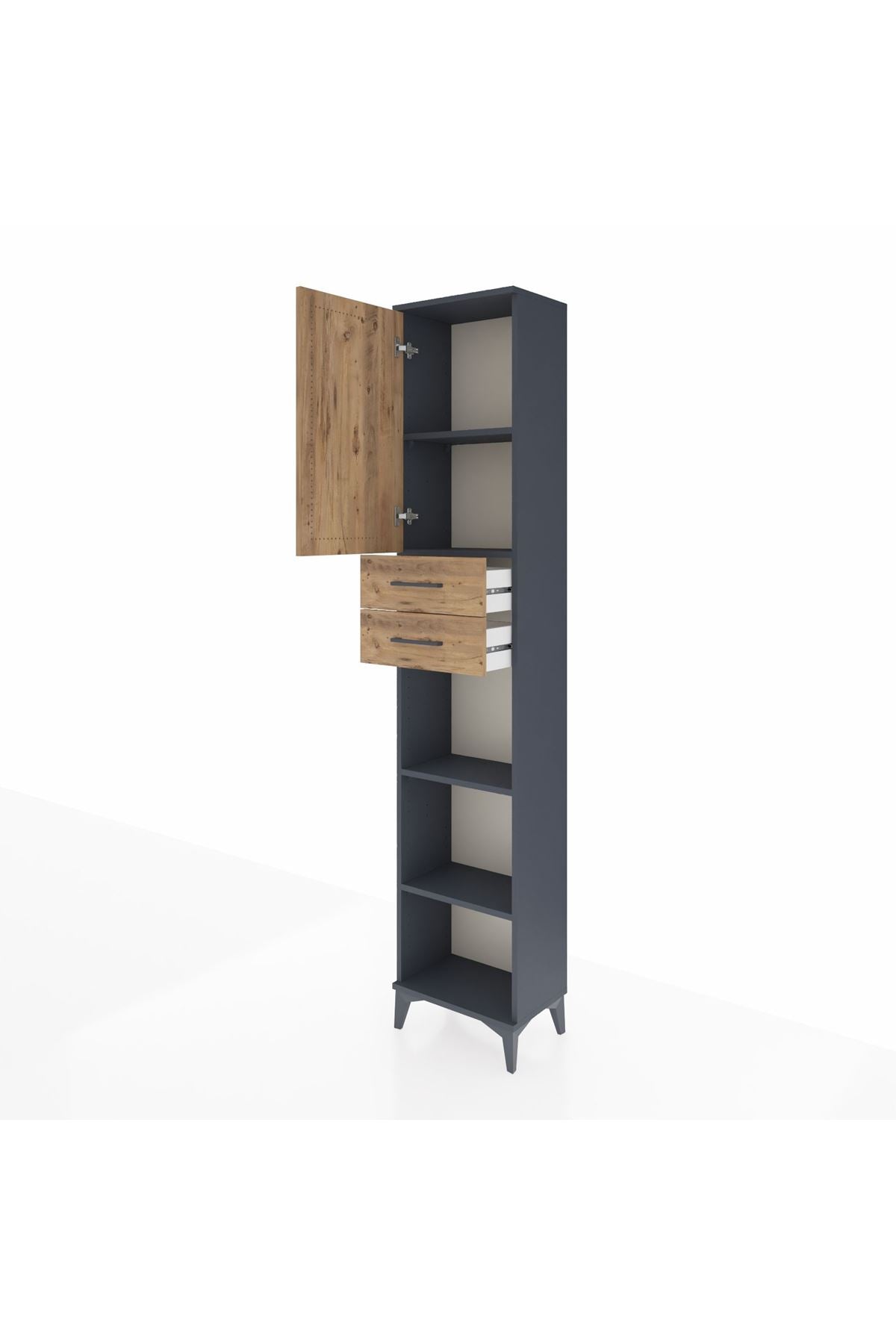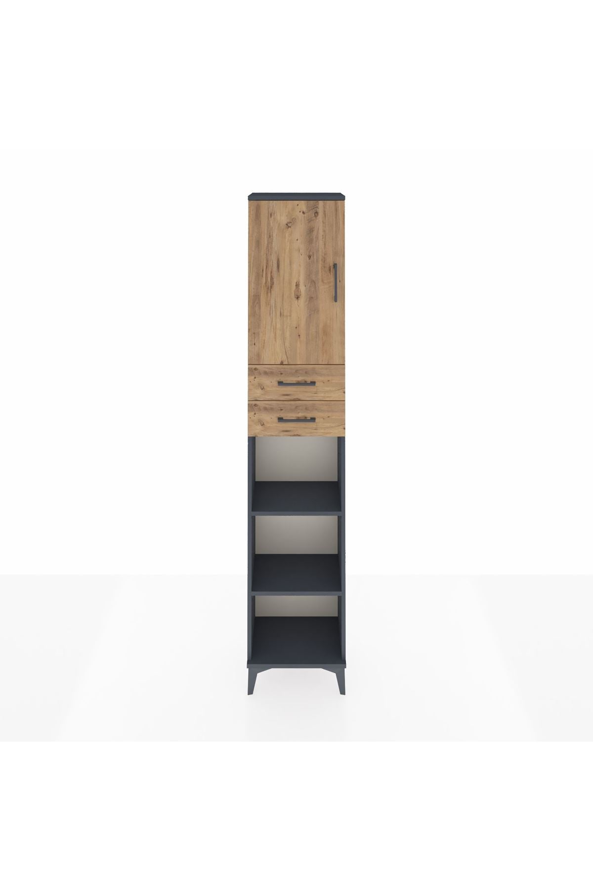 Arges Dolap 4 Raflı 2 Çekmeceli Tek Kapaklı 44x30x221 Antrasit-Çam