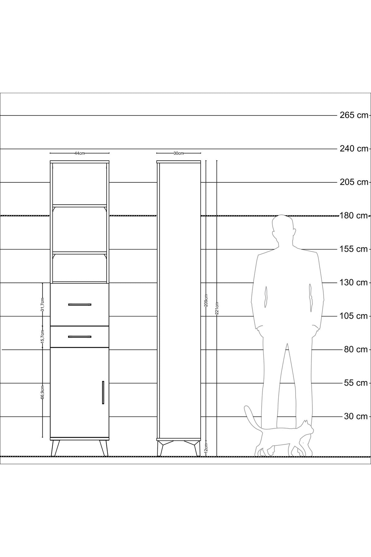 Arges Dolap 4 Raflı 2 Çekmeceli Tek Kapaklı 44x30x221 Aytaşı-Çam