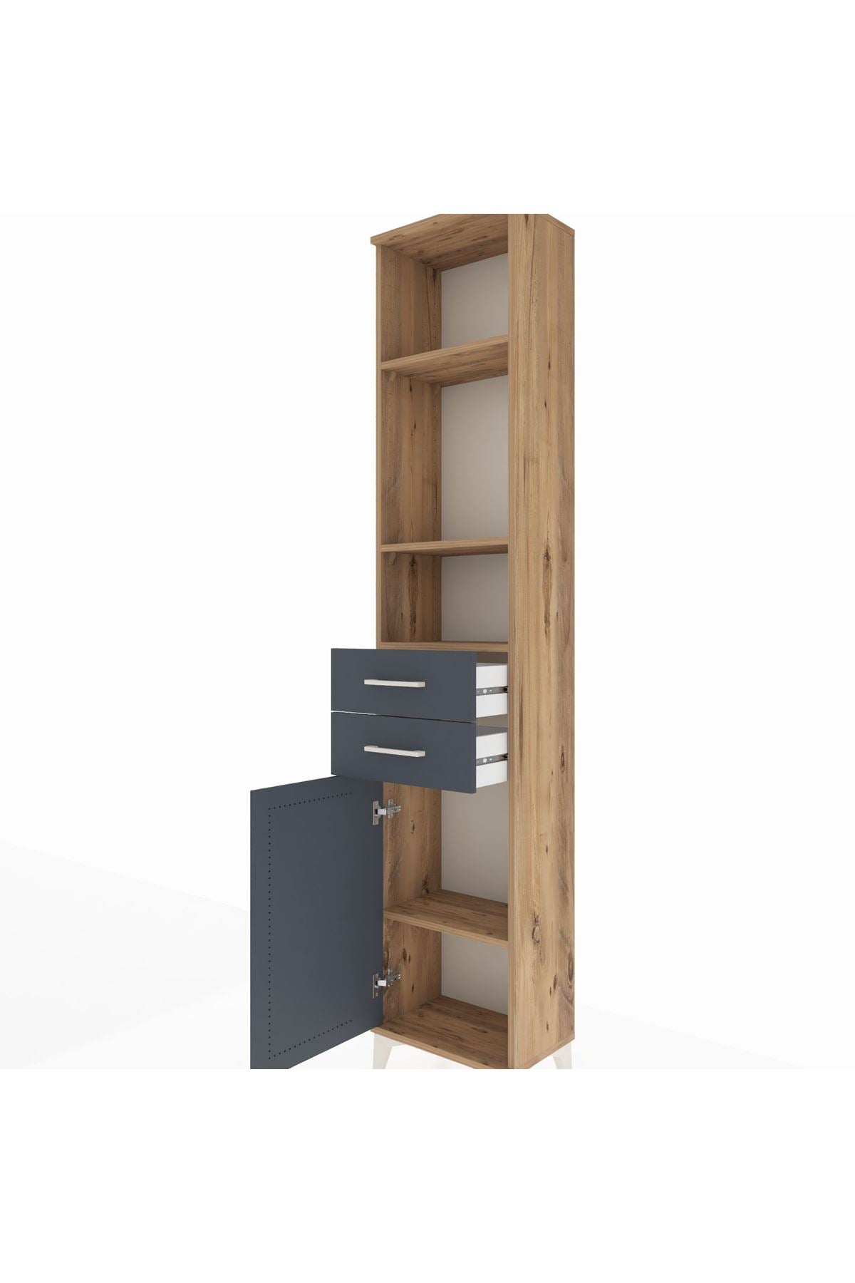 Arges Dolap 4 Raflı 2 Çekmeceli Tek Kapaklı 44x30x221 Çam-Antrasit