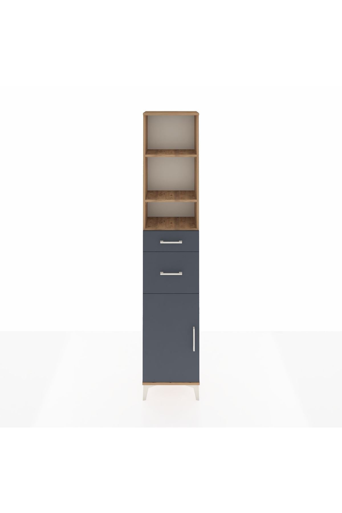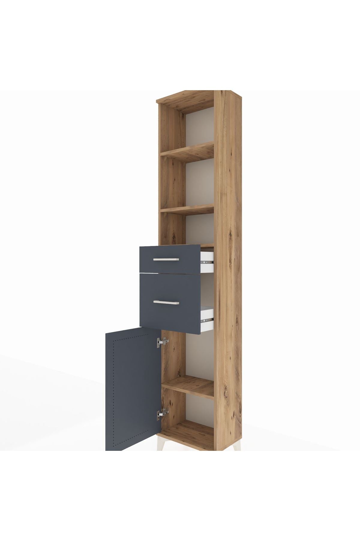 Arges Dolap 4 Raflı 2 Çekmeceli Tek Kapaklı 44x30x221 Çam-Antrasit