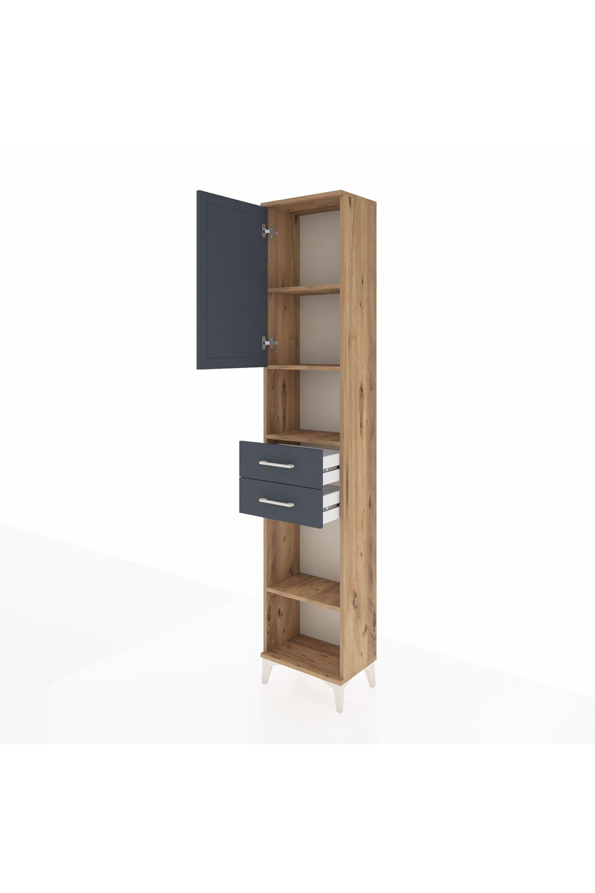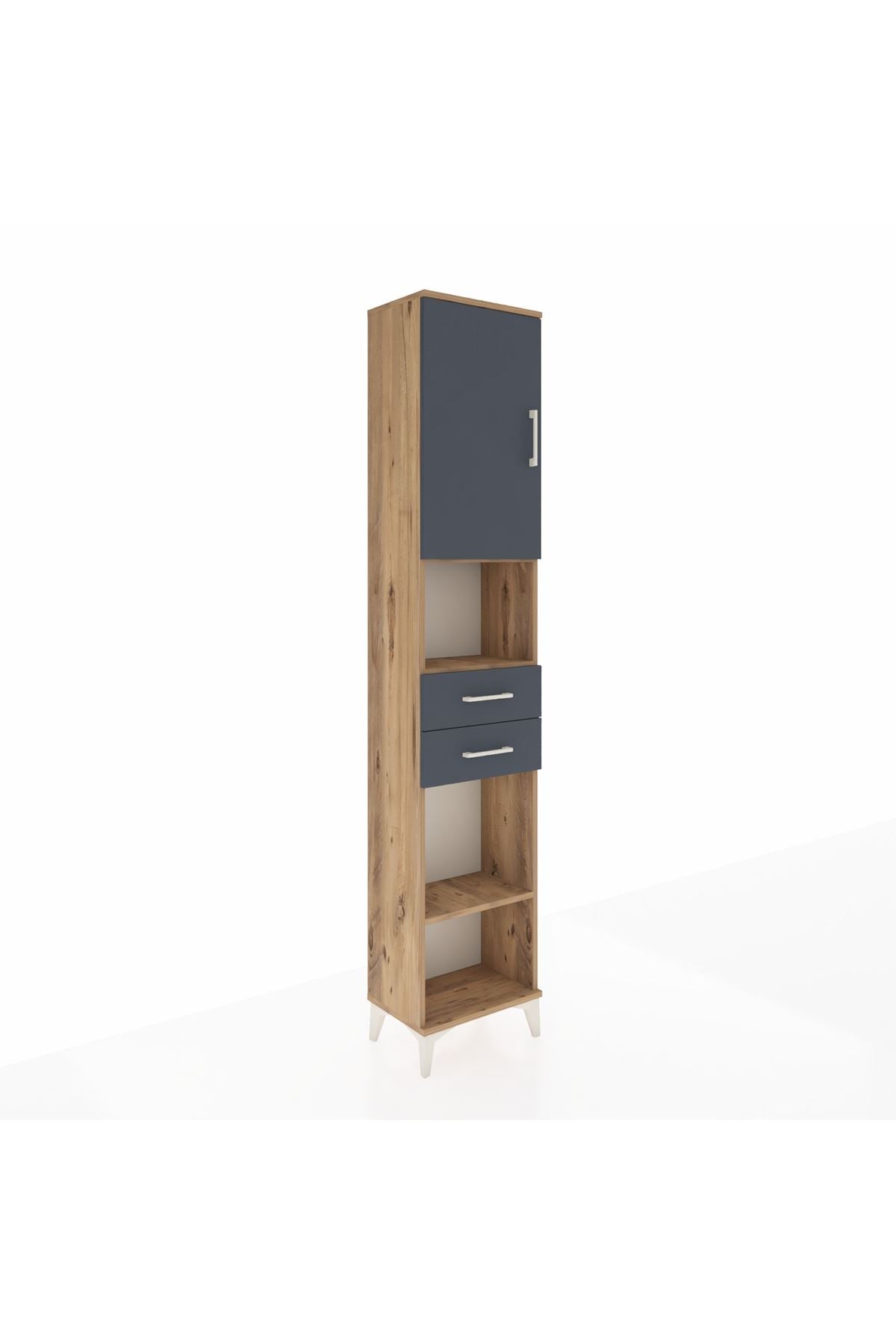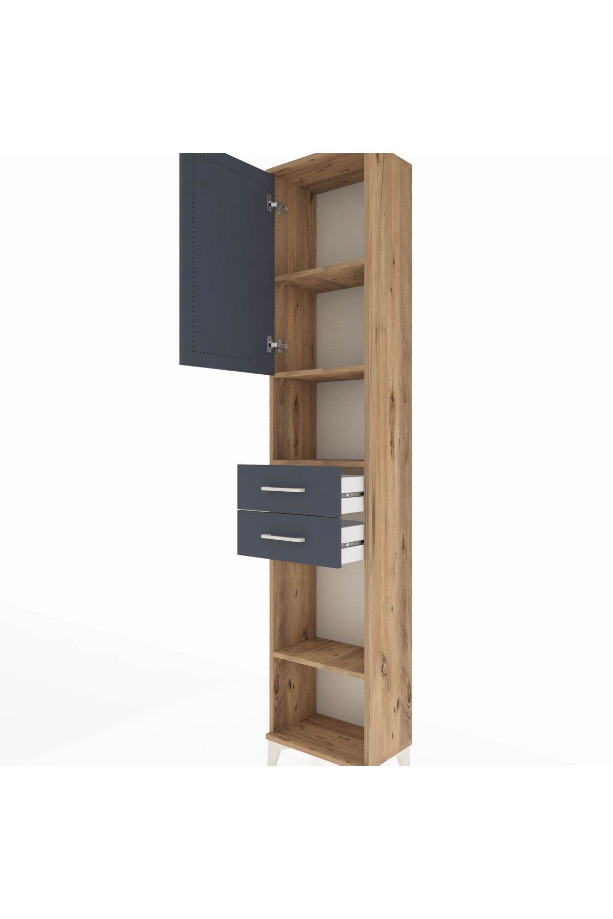 Arges Dolap 4 Raflı 2 Çekmeceli Tek Kapaklı 44x30x221 Çam-Antrasit