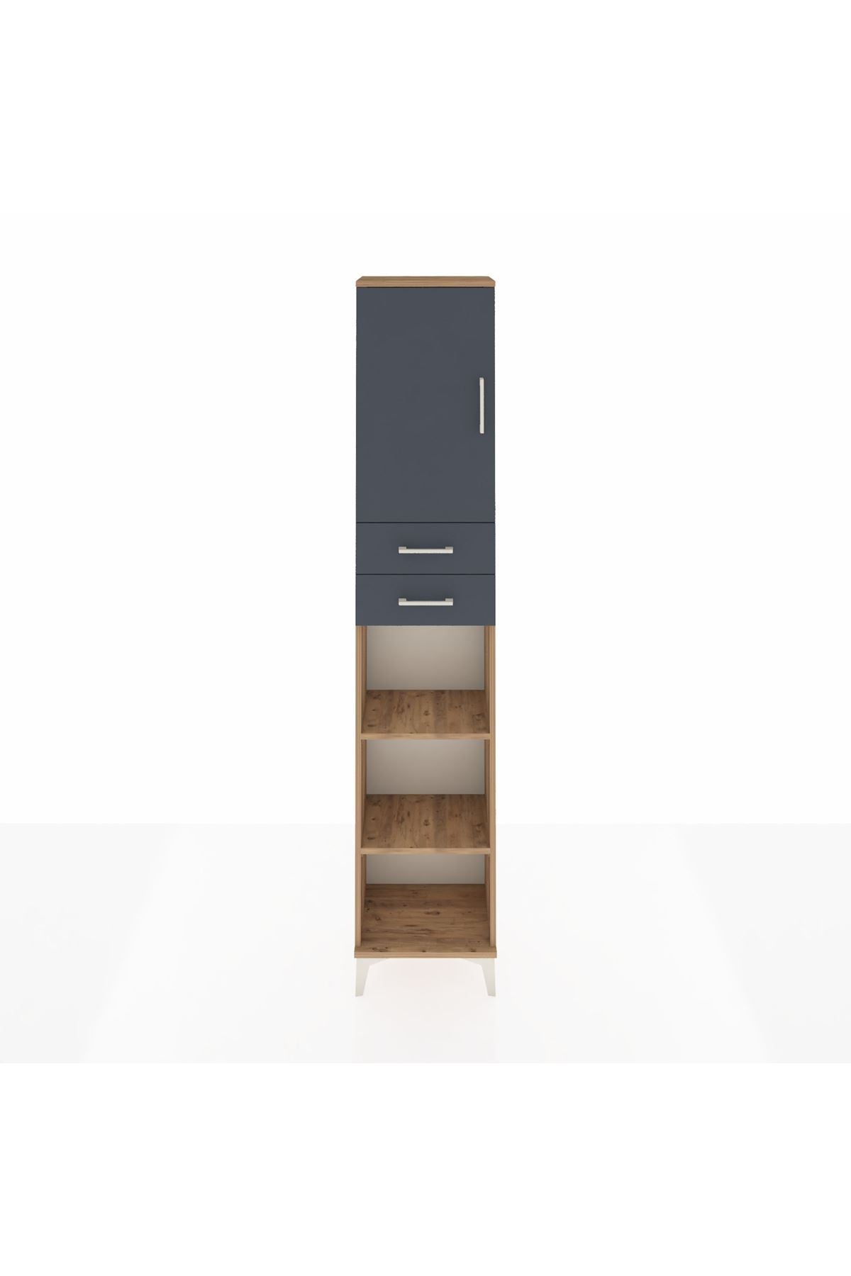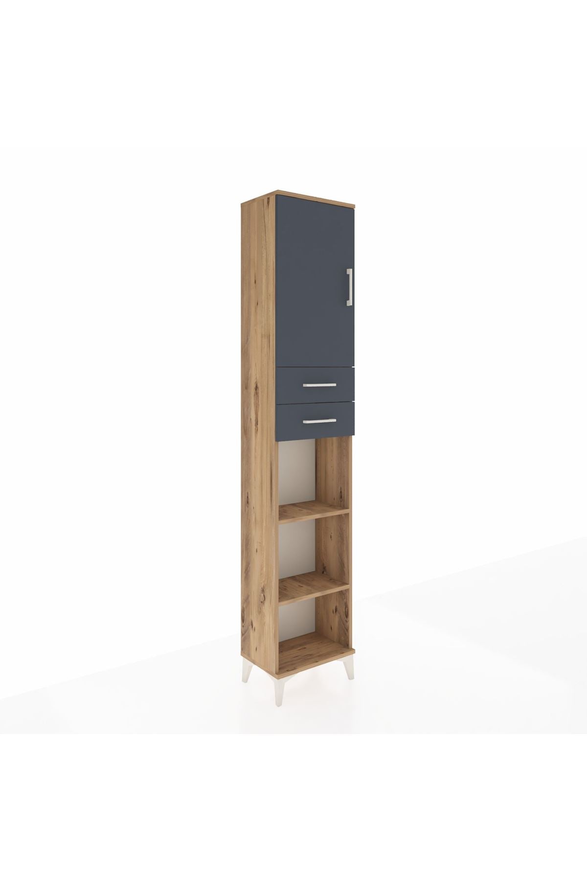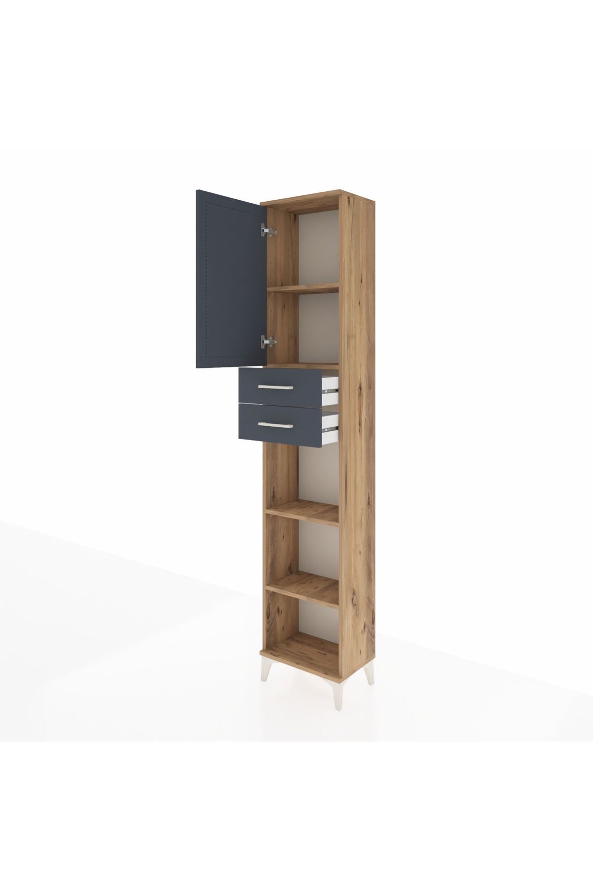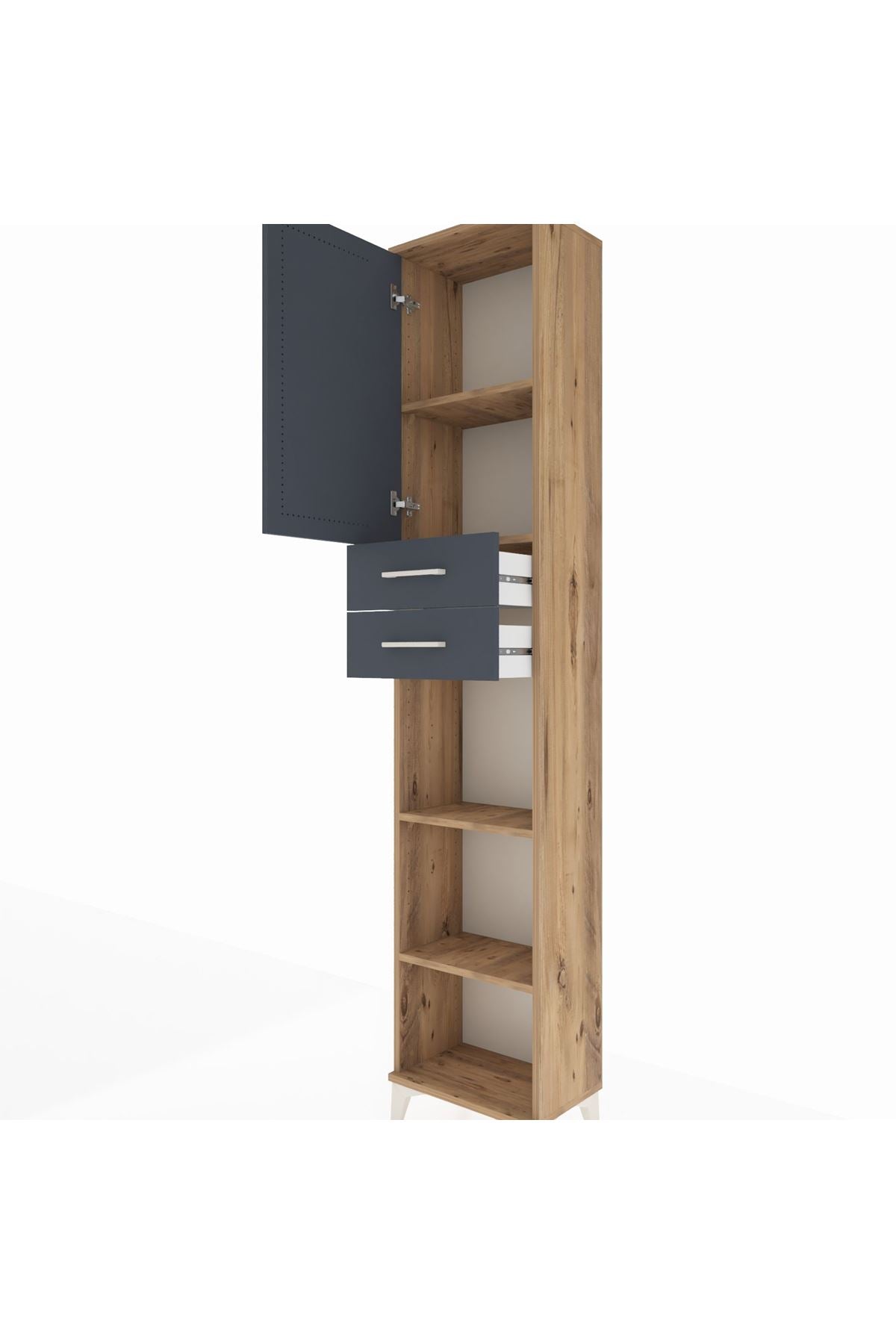 Arges Dolap 4 Raflı 2 Çekmeceli Tek Kapaklı 44x30x221 Çam-Antrasit
