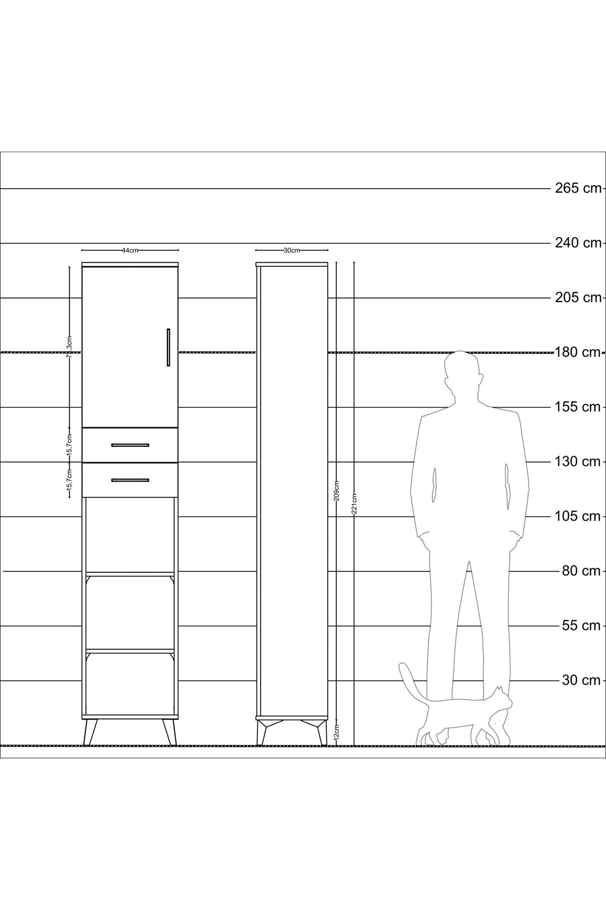 Arges Dolap 4 Raflı 2 Çekmeceli Tek Kapaklı 44x30x221 Çam-Çam