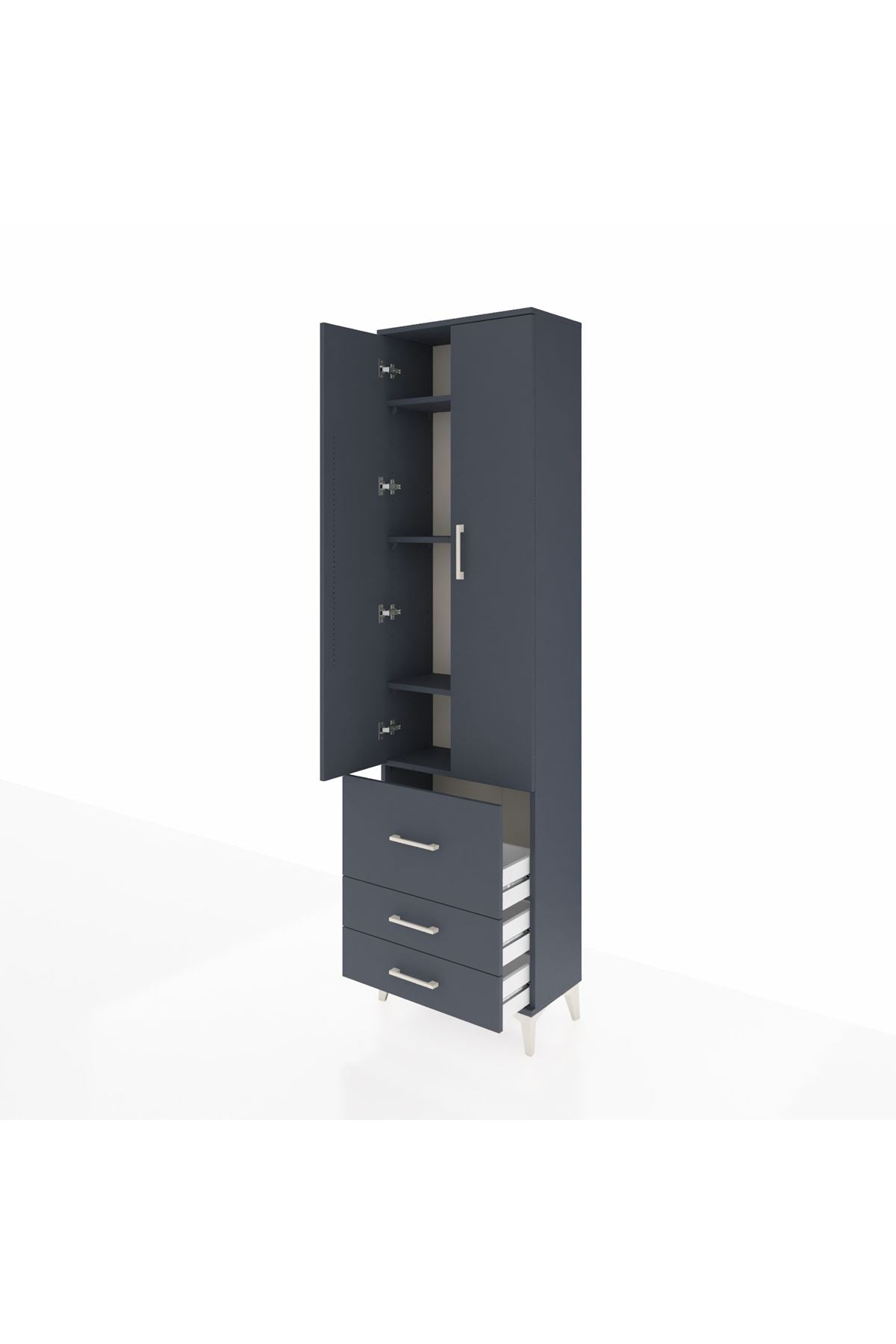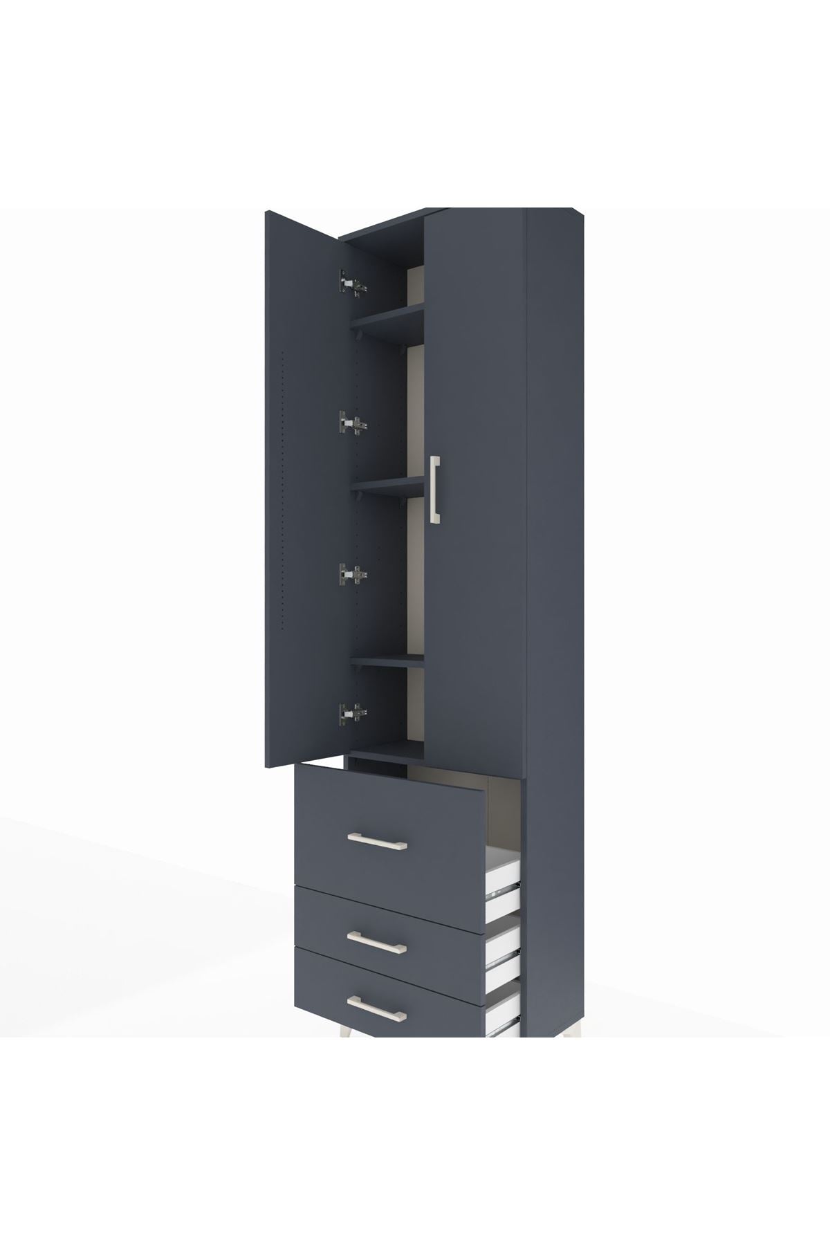Arges Dolap 4 Raflı 3 Çekmeceli 2 Kapaklı 60x30x221 Antrasit-Antrasit