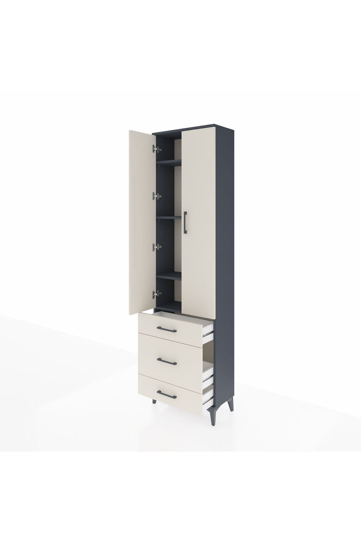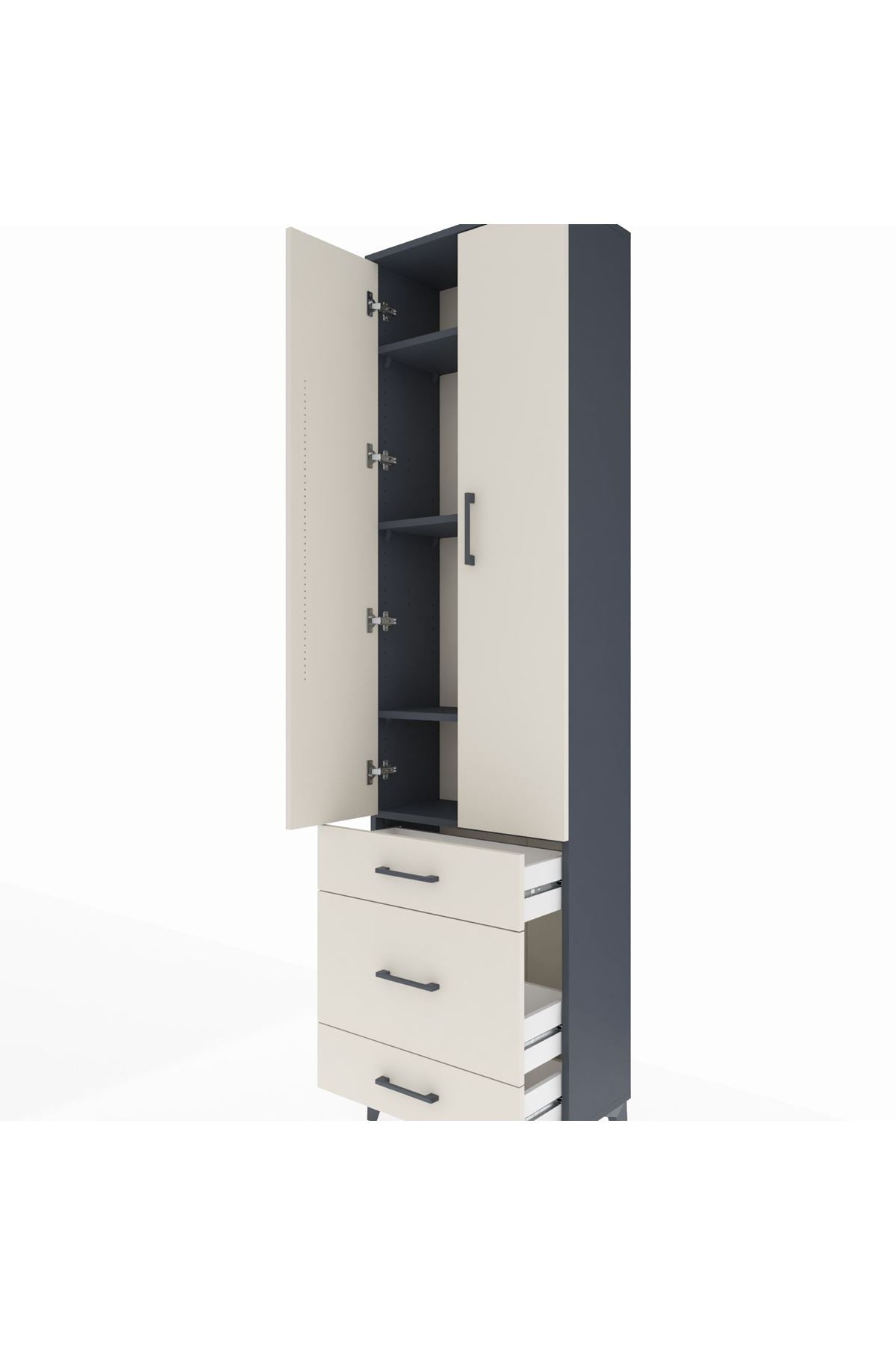 Arges Dolap 4 Raflı 3 Çekmeceli 2 Kapaklı 60x30x221 Antrasit-Aytaşı