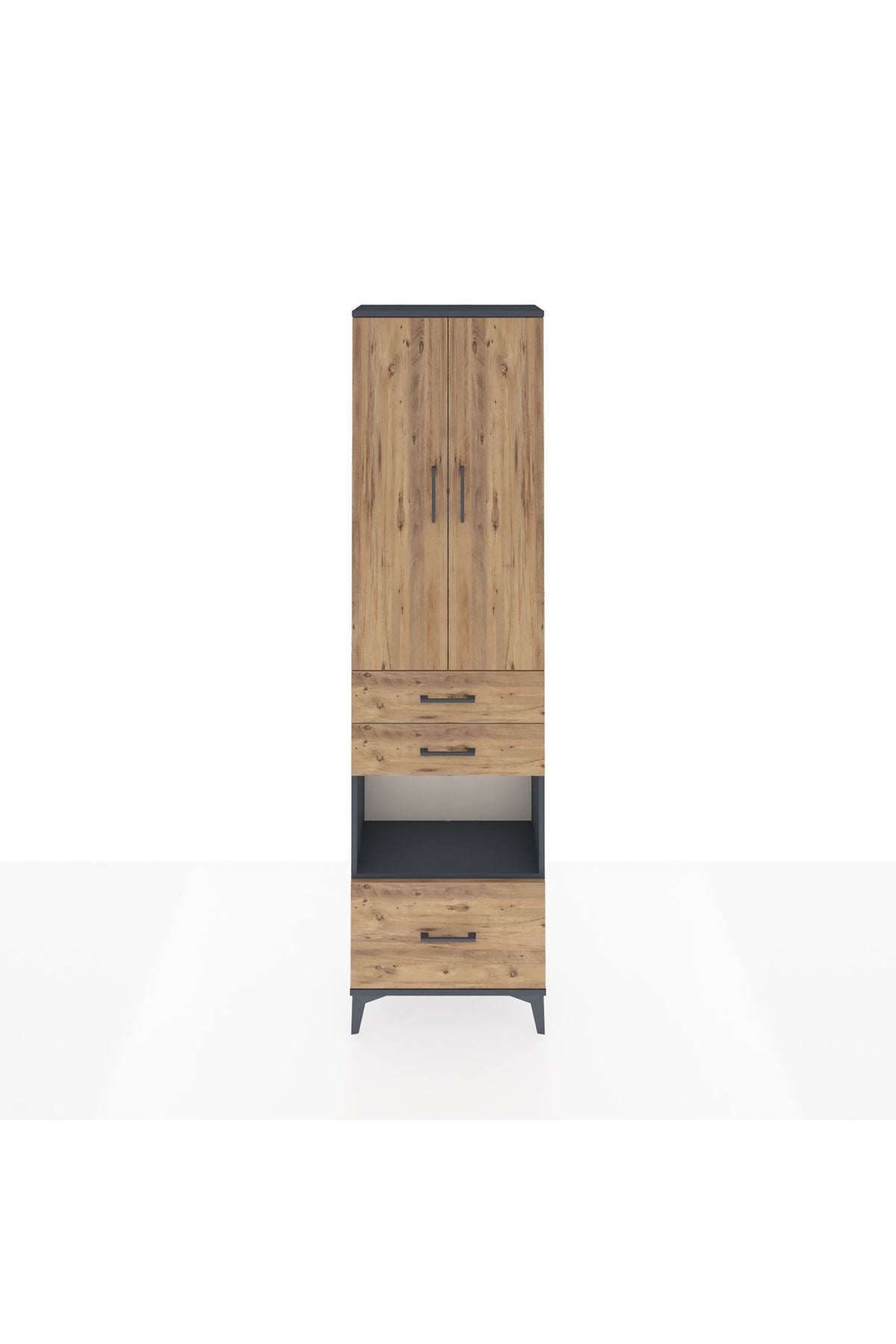 Arges Dolap 4 Raflı 3 Çekmeceli 2 Kapaklı 60x30x221 Antrasit-Çam