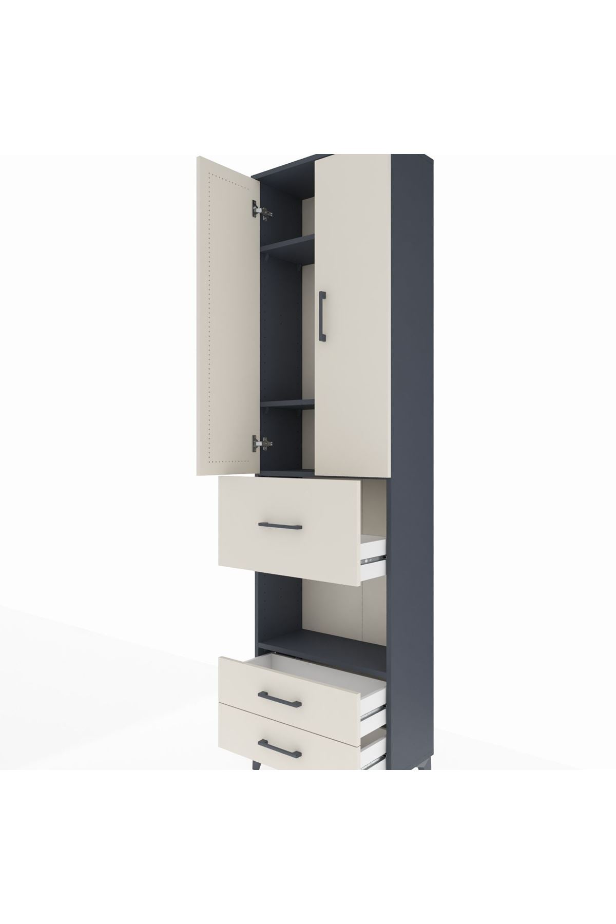 Arges Dolap 4 Raflı 3 Çekmeceli 2 Kapaklı 60x30x221 Antrasit-Aytaşı
