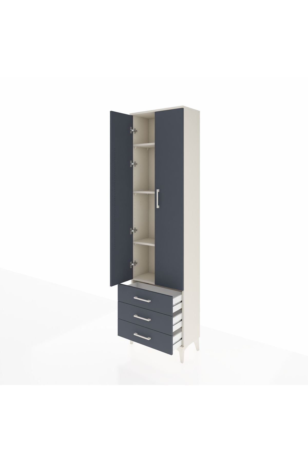 Arges Dolap 4 Raflı 3 Çekmeceli 2 Kapaklı 60x30x221 Aytaşı-Antrasit