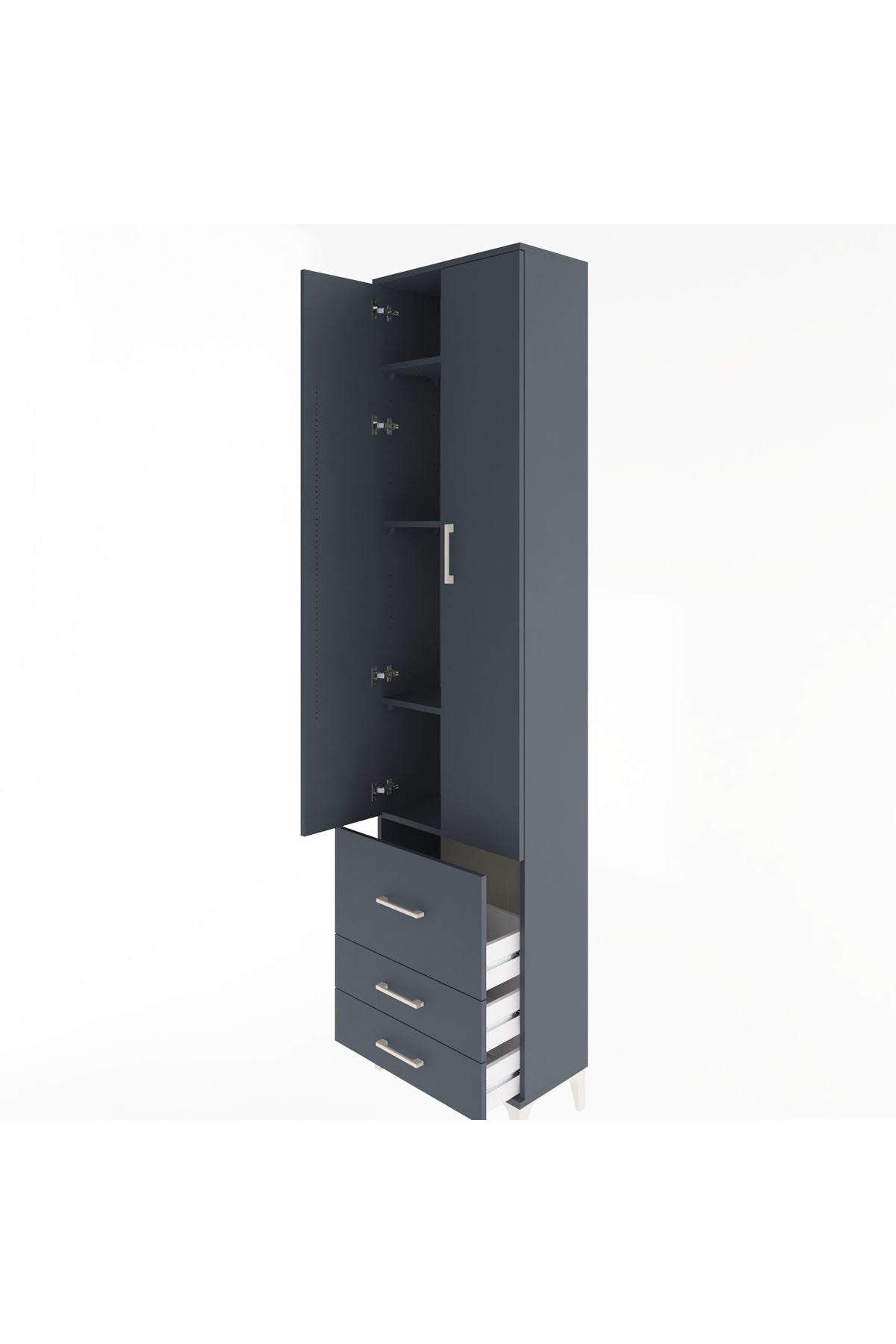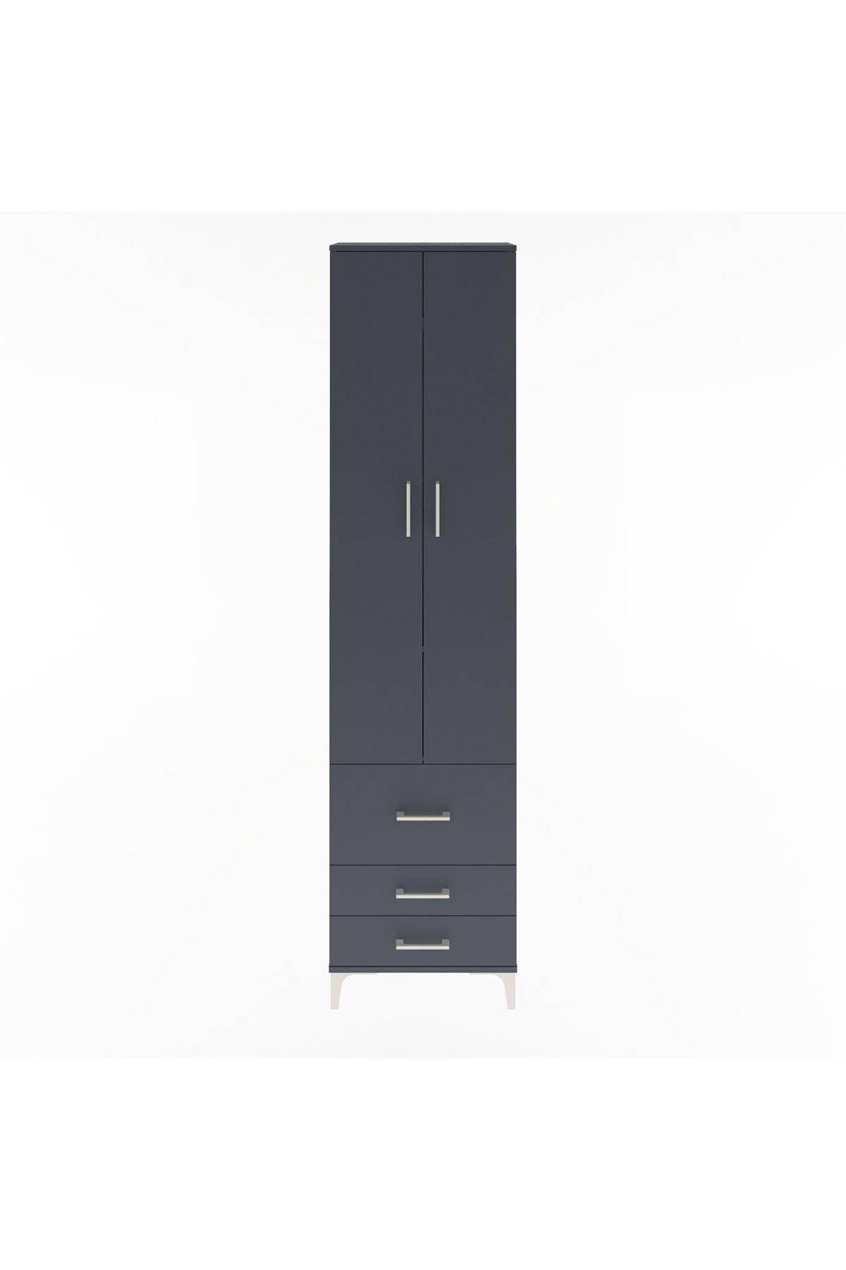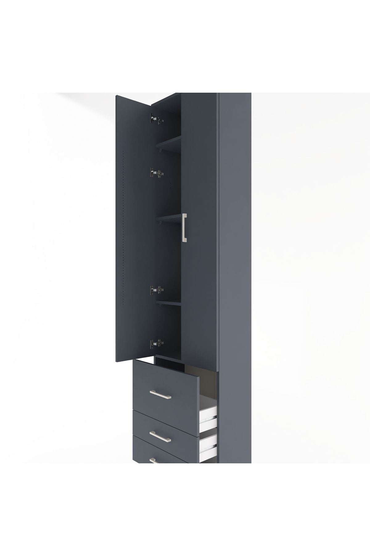 Arges Dolap 4 Raflı 3 Çekmeceli 2 Kapaklı 60x30x243 Antrasit-Antrasit