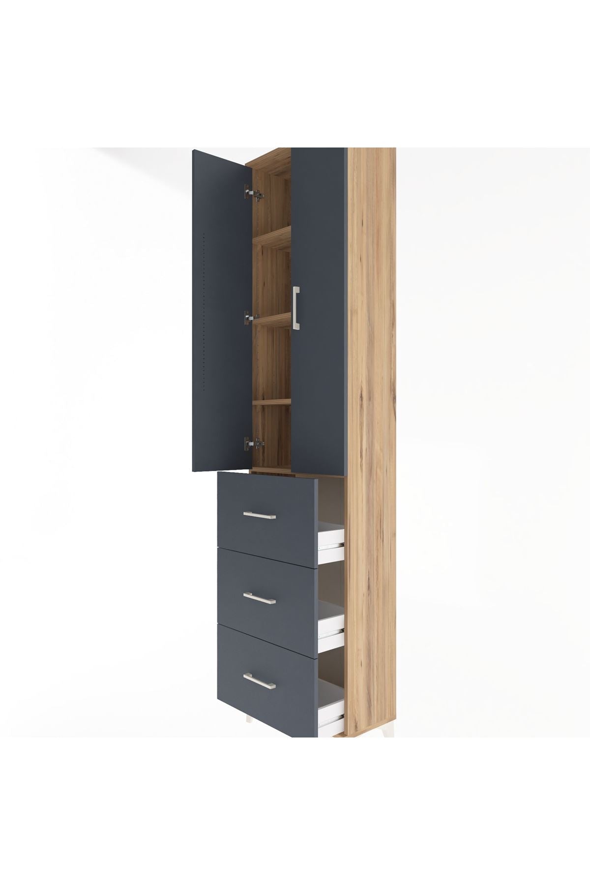 Arges Dolap 4 Raflı 3 Çekmeceli 2 Kapaklı 60x30x243 Çam-Antrasit
