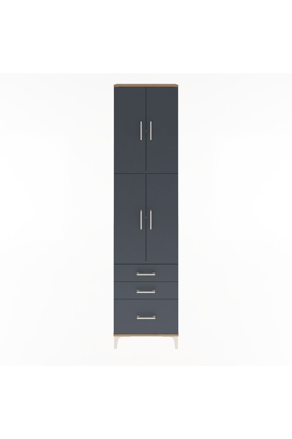 Arges Dolap 4 Raflı 3 Çekmeceli 4 Kapaklı 60x30x243 Çam-Antrasit