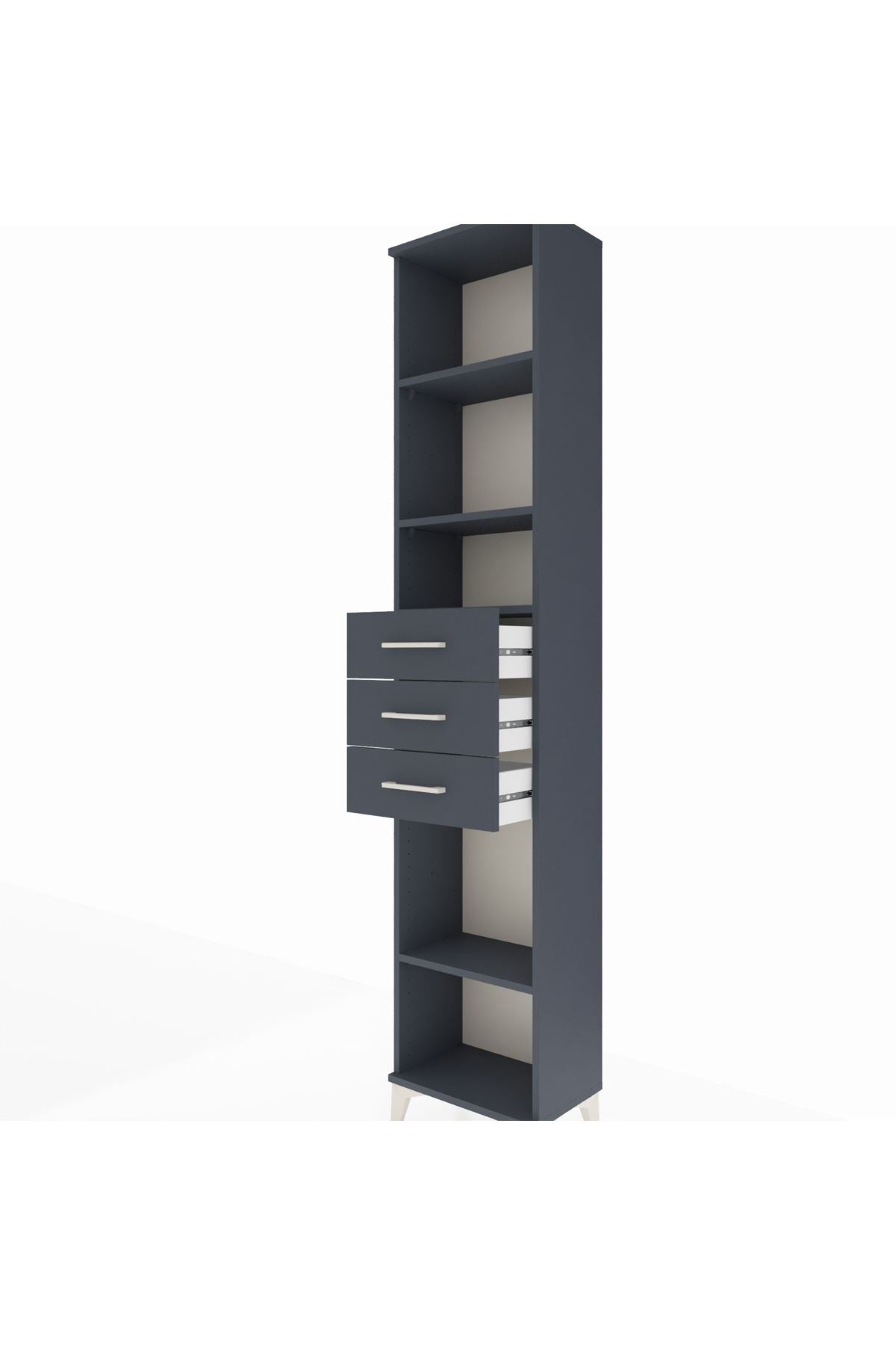 Arges Dolap 4 Raflı 3 Çekmeceli 44x30x221 Antrasit-Antrasit