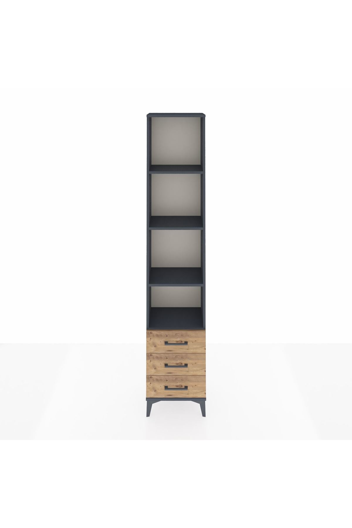 ✨ Arges Dolap 4 Raflı 3 Çekmeceli 44x30x221 Antrasit-Çam, modern yaşam alanlarına ustalıkla adapte olan şık bir depolama çözümüdür.