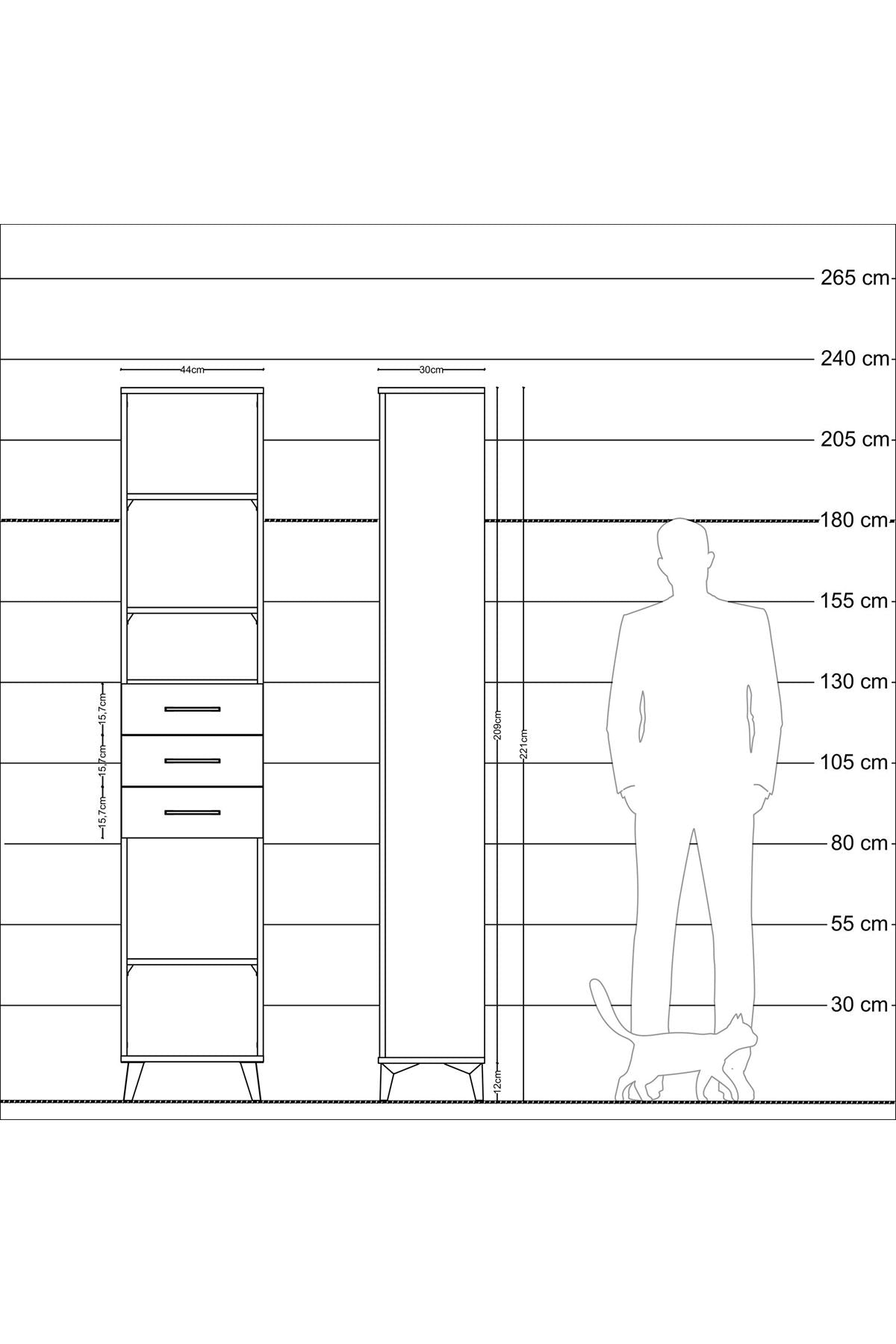 Arges Dolap 4 Raflı 3 Çekmeceli 44x30x221 Aytaşı-Antrasit