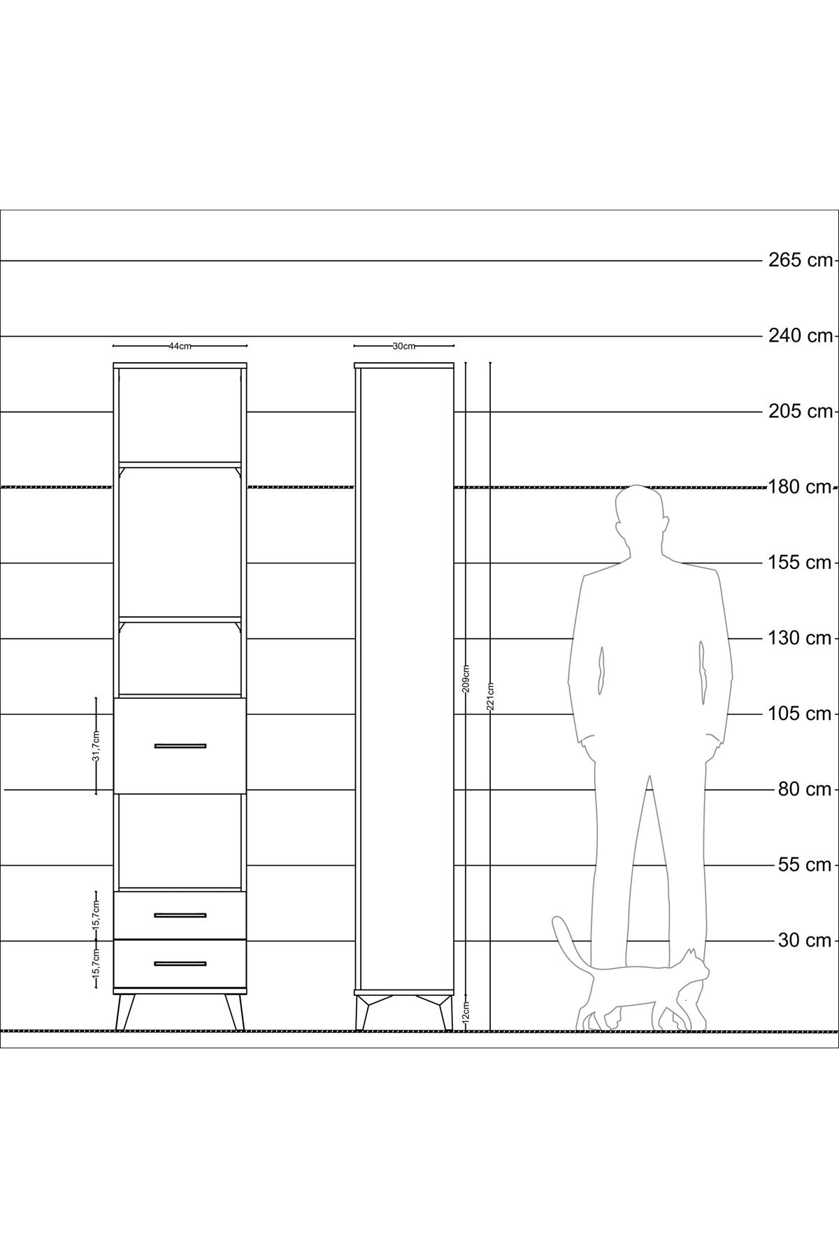 Arges Dolap 4 Raflı 3 Çekmeceli 44x30x221 Çam-Aytaşı