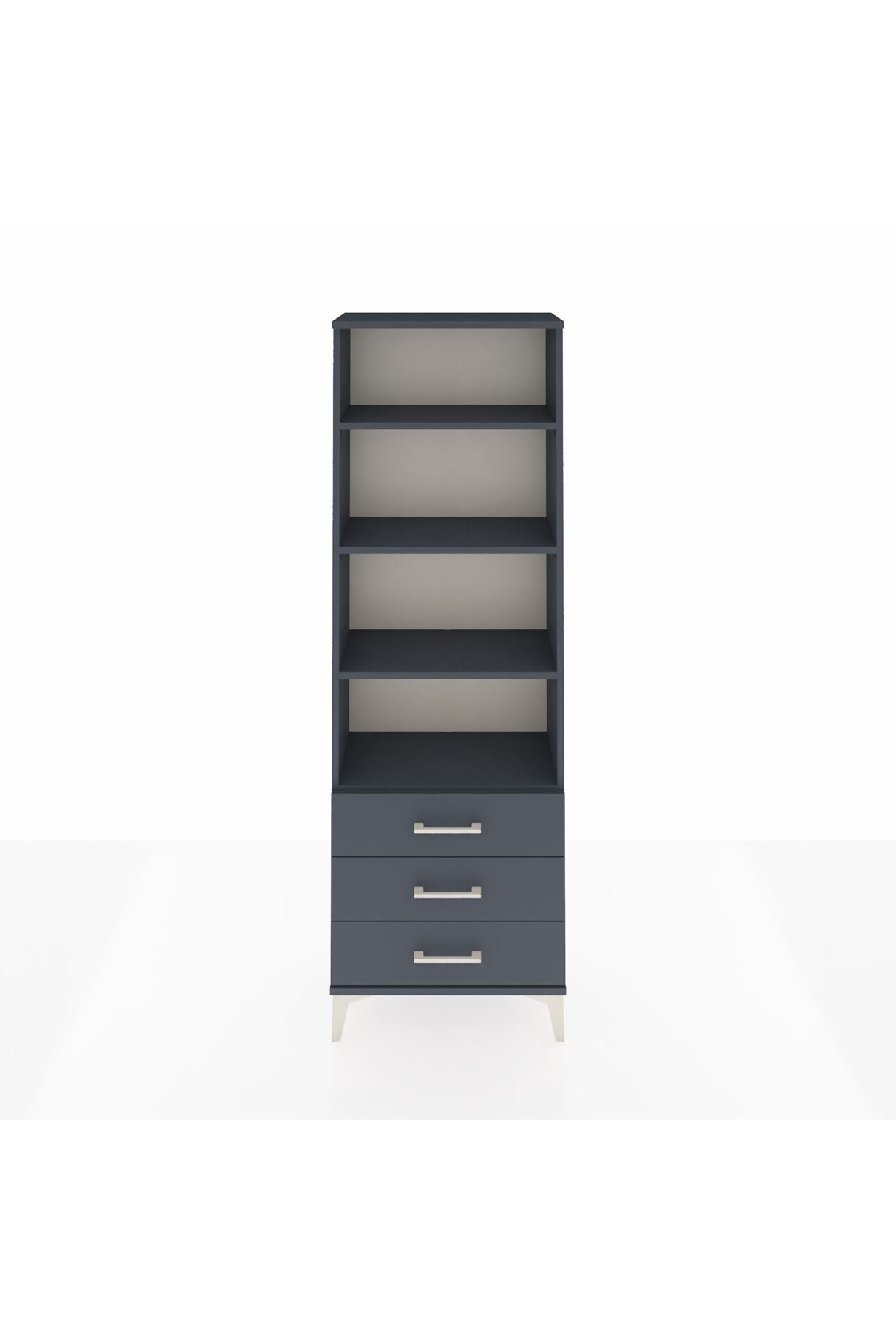 Arges Dolap 4 Raflı 3 Çekmeceli 60x30x182 Antrasit-Antrasit