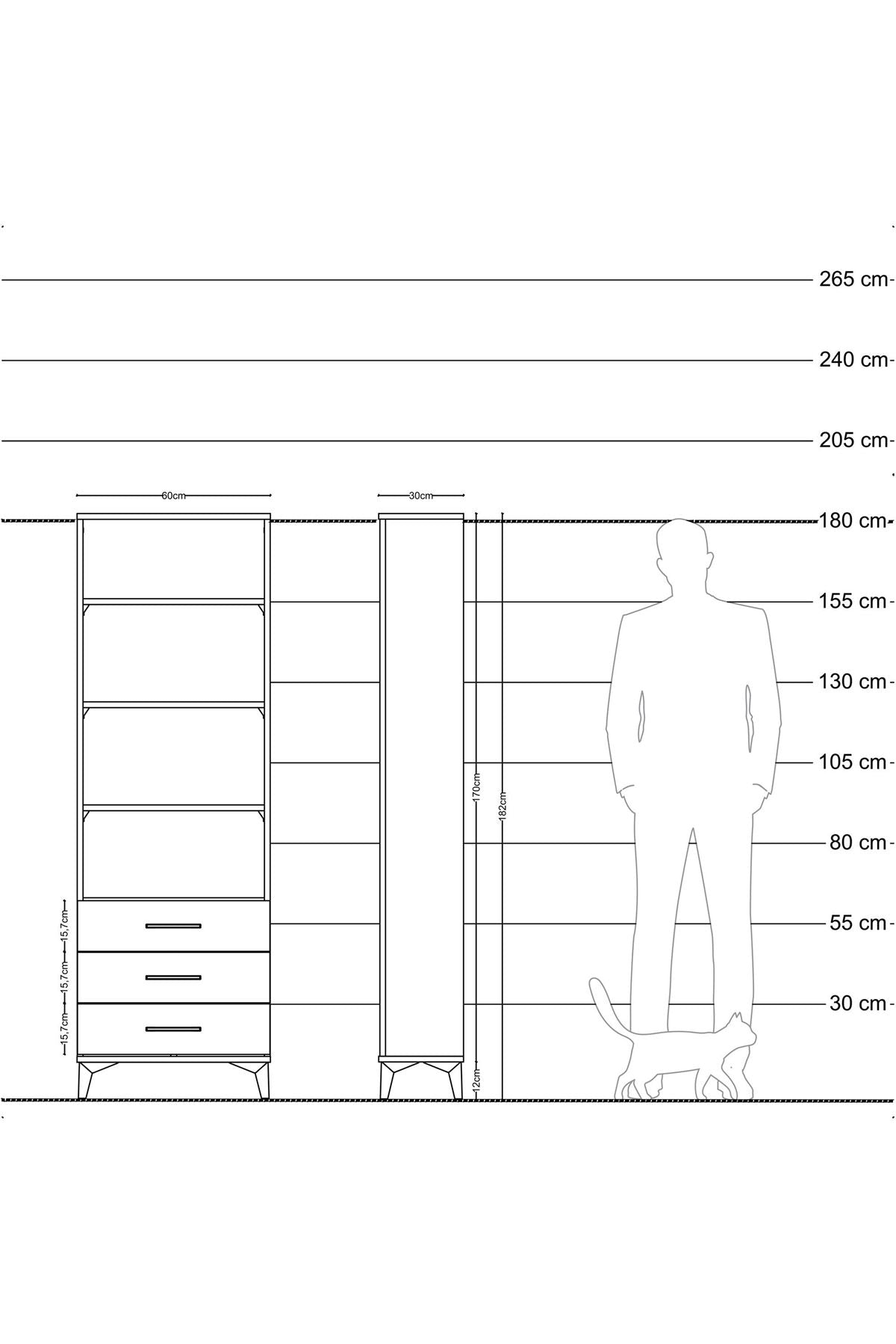 Arges Dolap 4 Raflı 3 Çekmeceli 60x30x182 Aytaşı-Çam