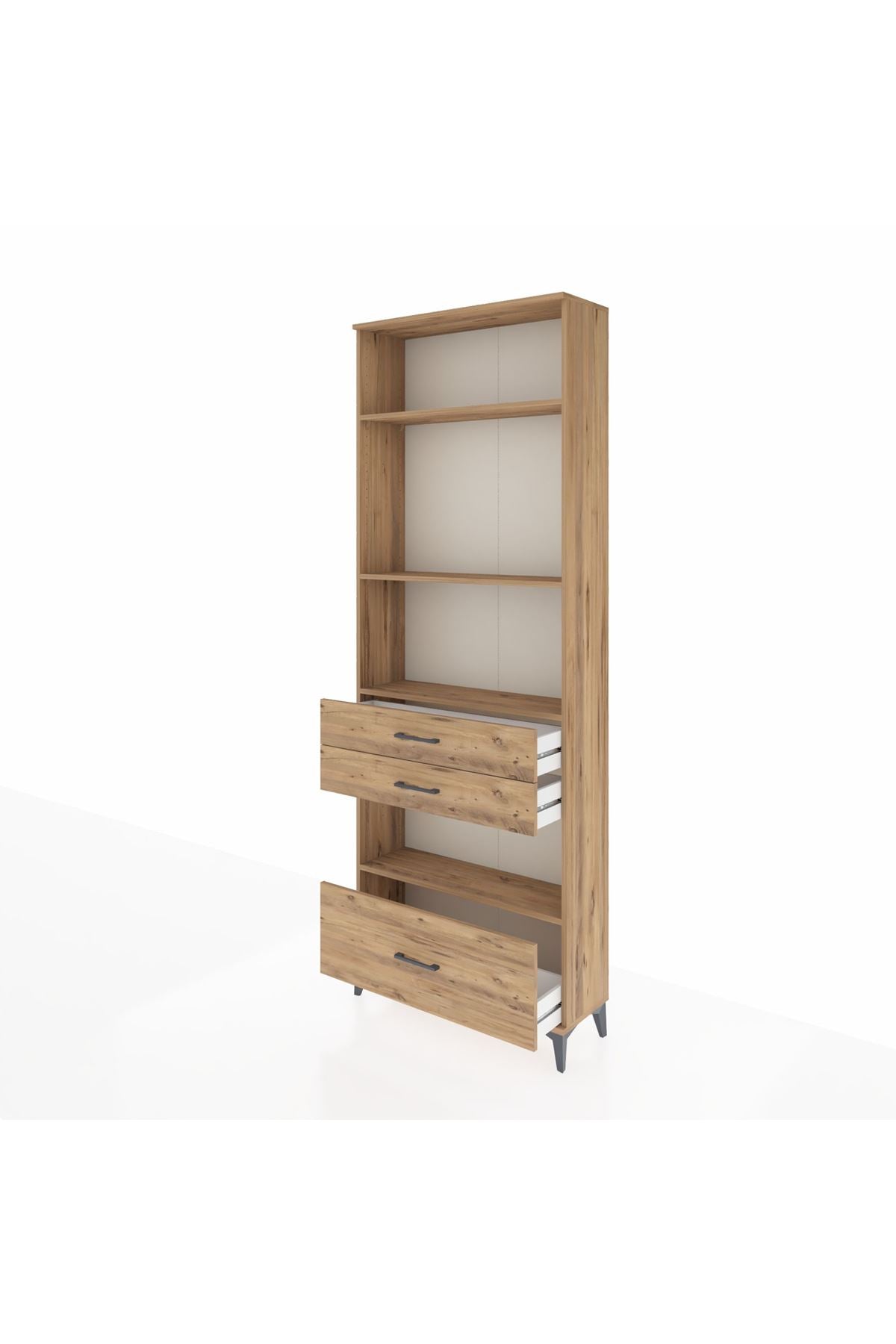 Arges Dolap 4 Raflı 3 Çekmeceli 88x30x243 Çam-Çam