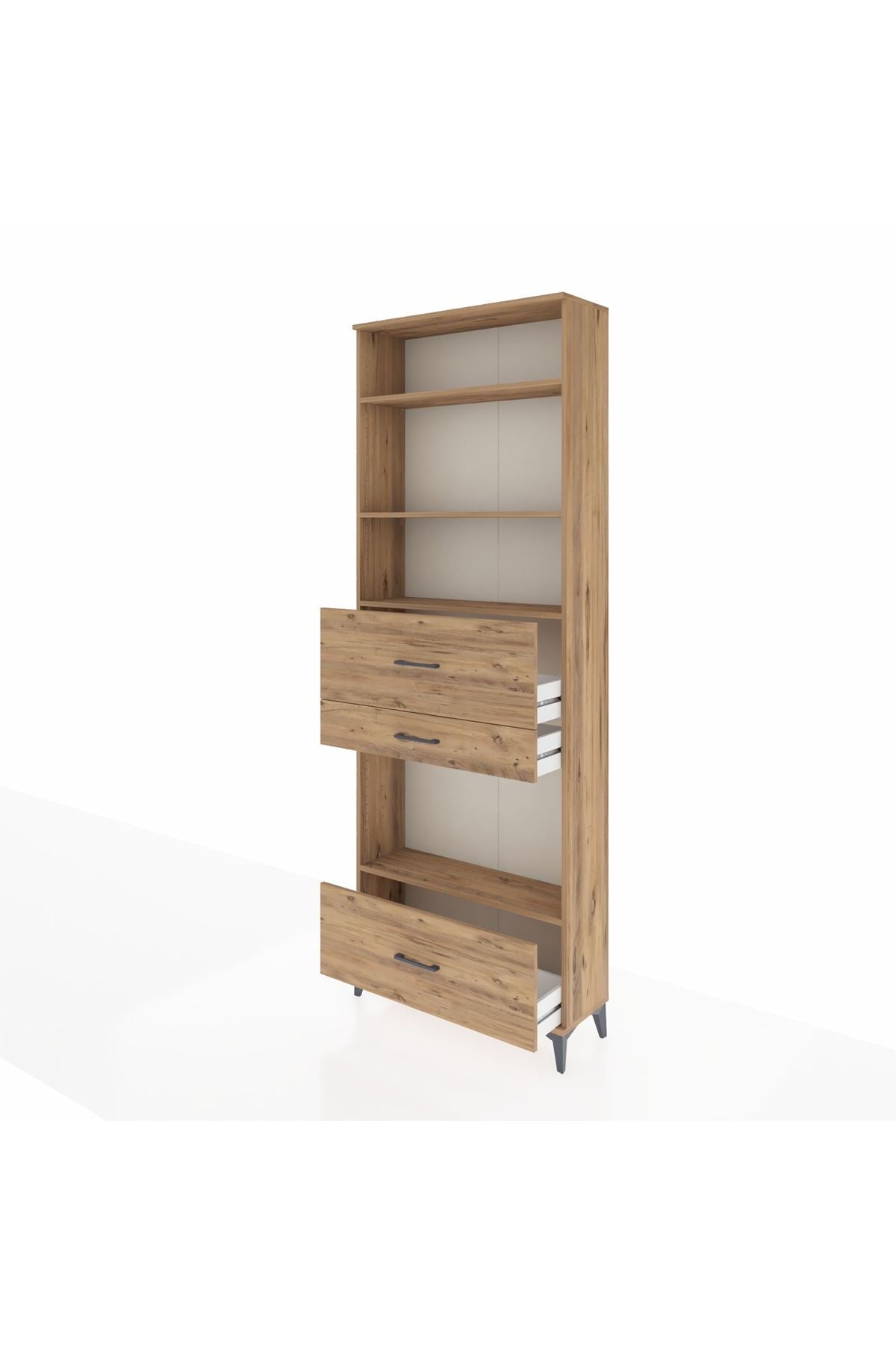 Arges Dolap 4 Raflı 3 Çekmeceli 88x30x243 Çam-Çam