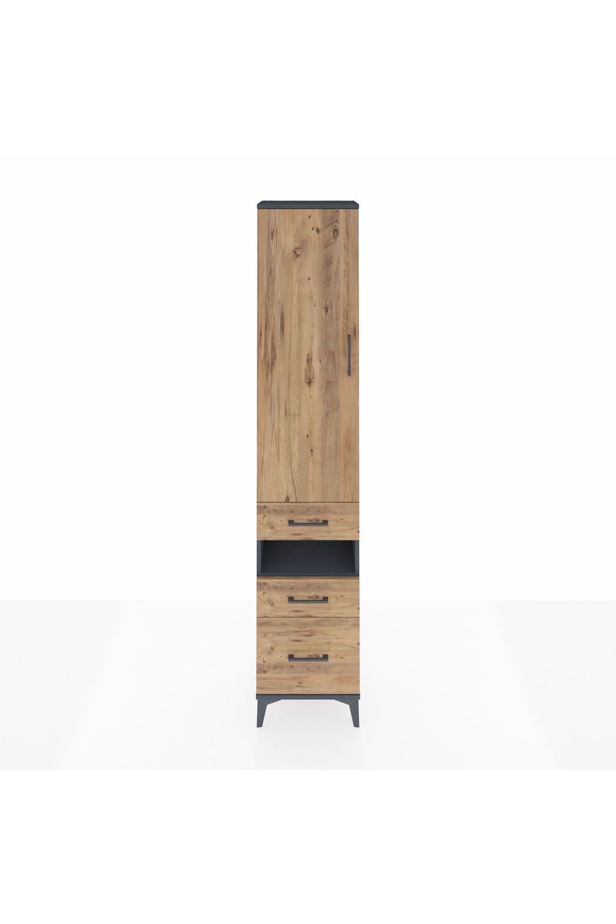 Arges Dolap 4 Raflı 3 Çekmeceli Tek Kapaklı 44x30x221 Antrasit-Çam