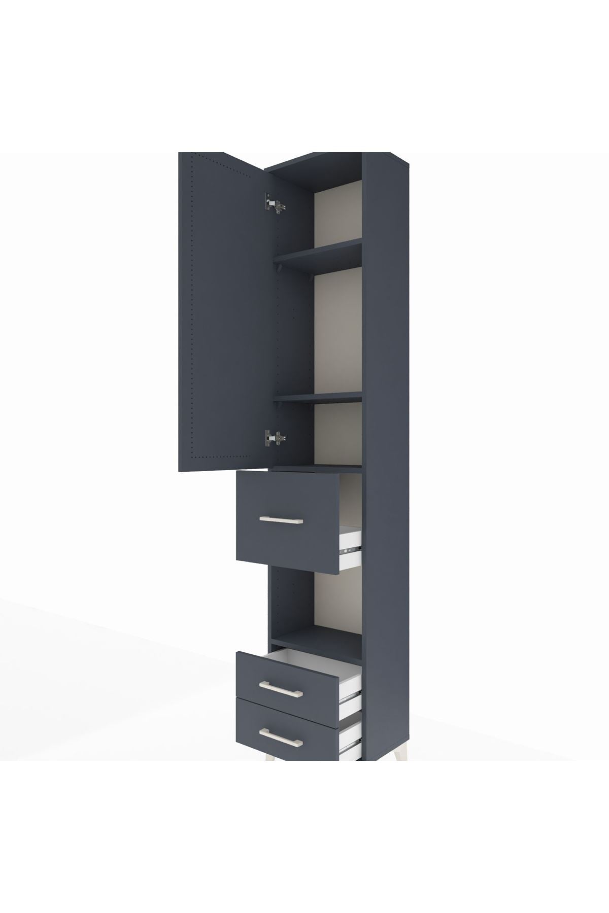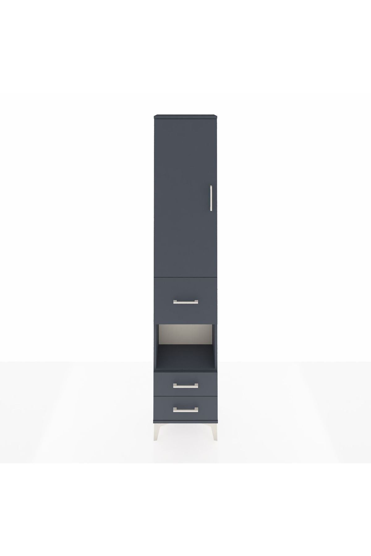 Arges Dolap 4 Raflı 3 Çekmeceli Tek Kapaklı 44x30x221 Antrasit-Antrasit