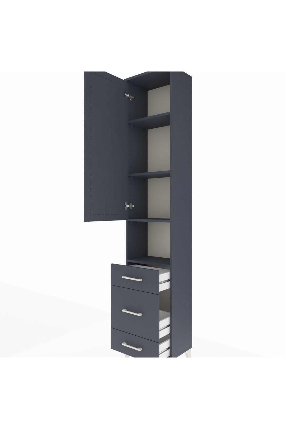 Arges Dolap 4 Raflı 3 Çekmeceli Tek Kapaklı 44x30x221 Antrasit-Antrasit