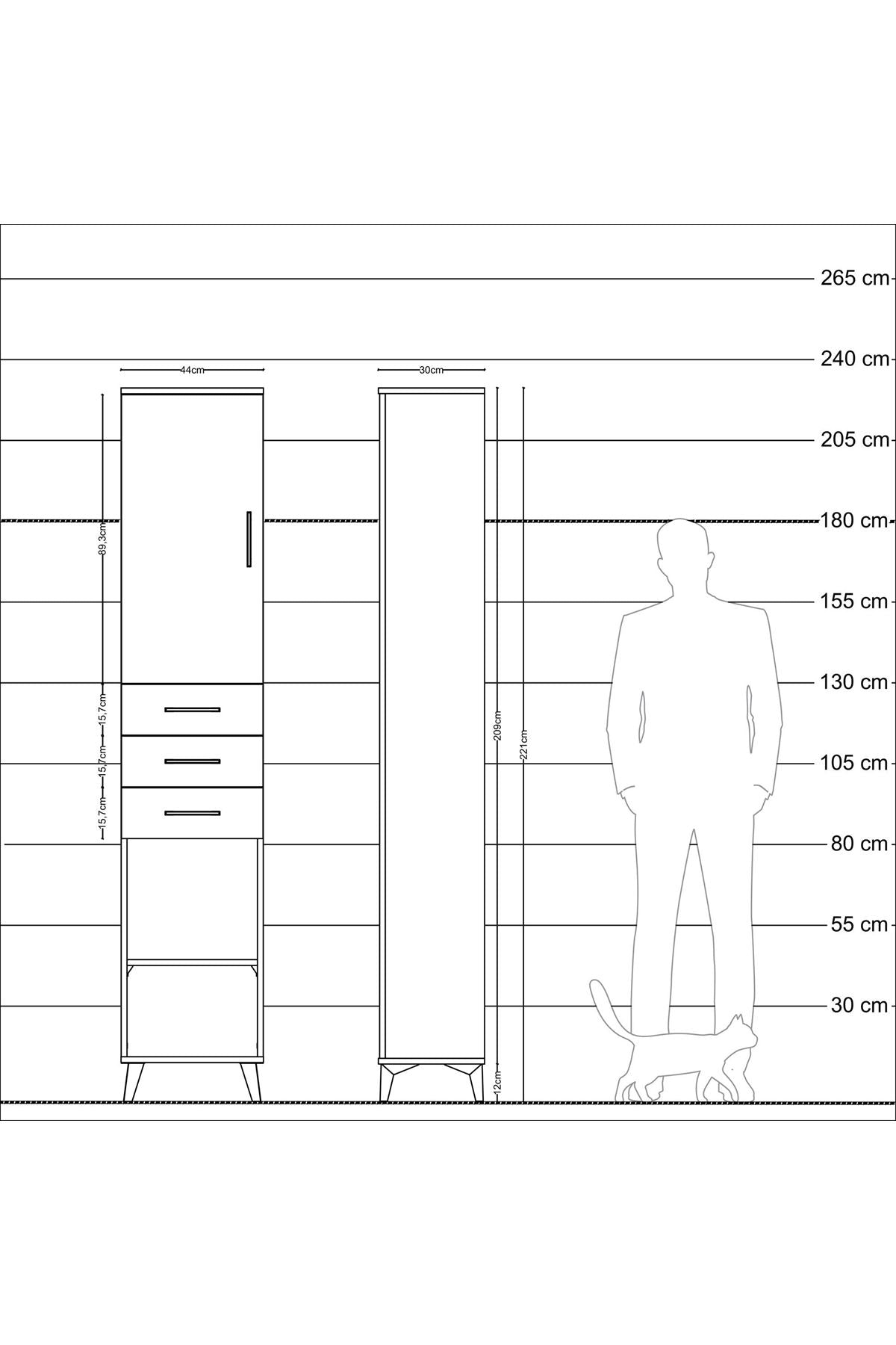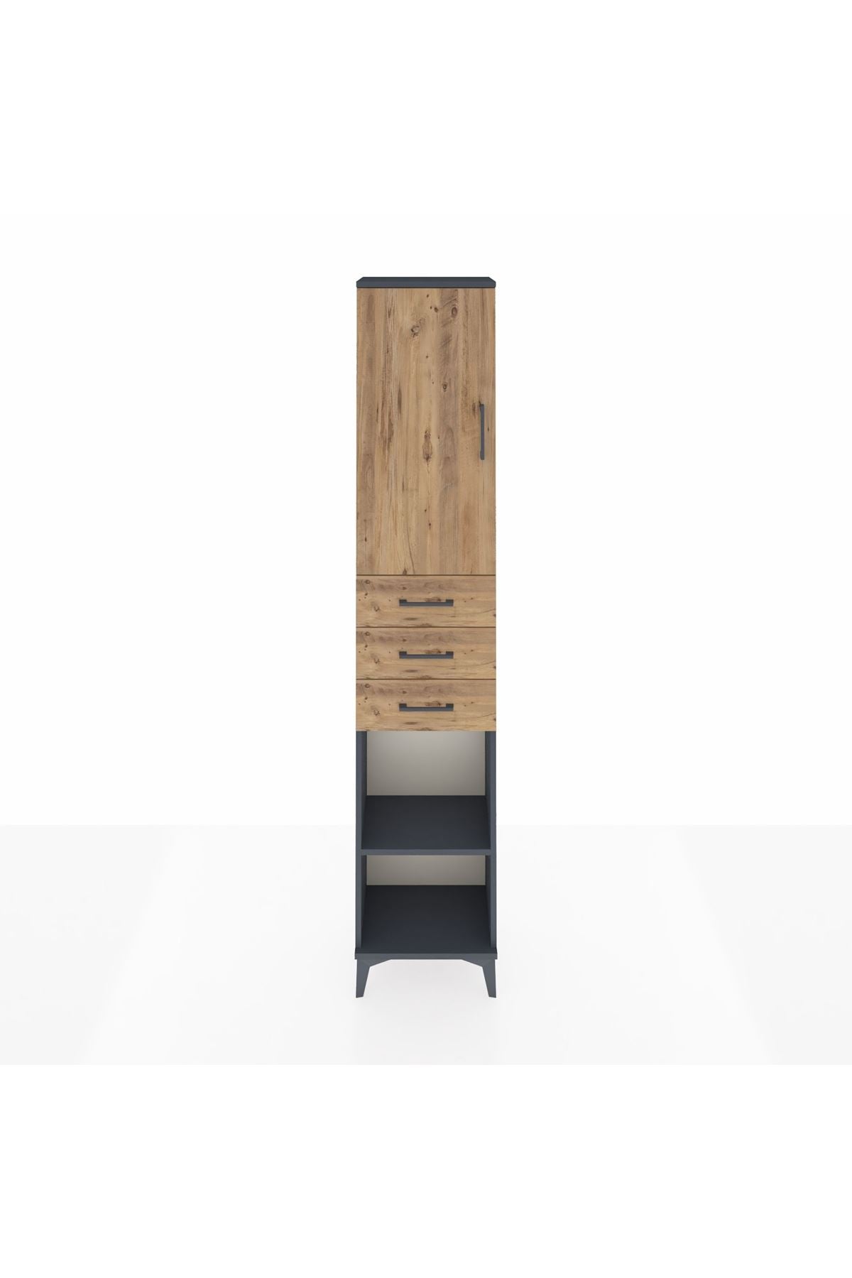 Arges Dolap 4 Raflı 3 Çekmeceli Tek Kapaklı 44x30x221 Antrasit-Çam