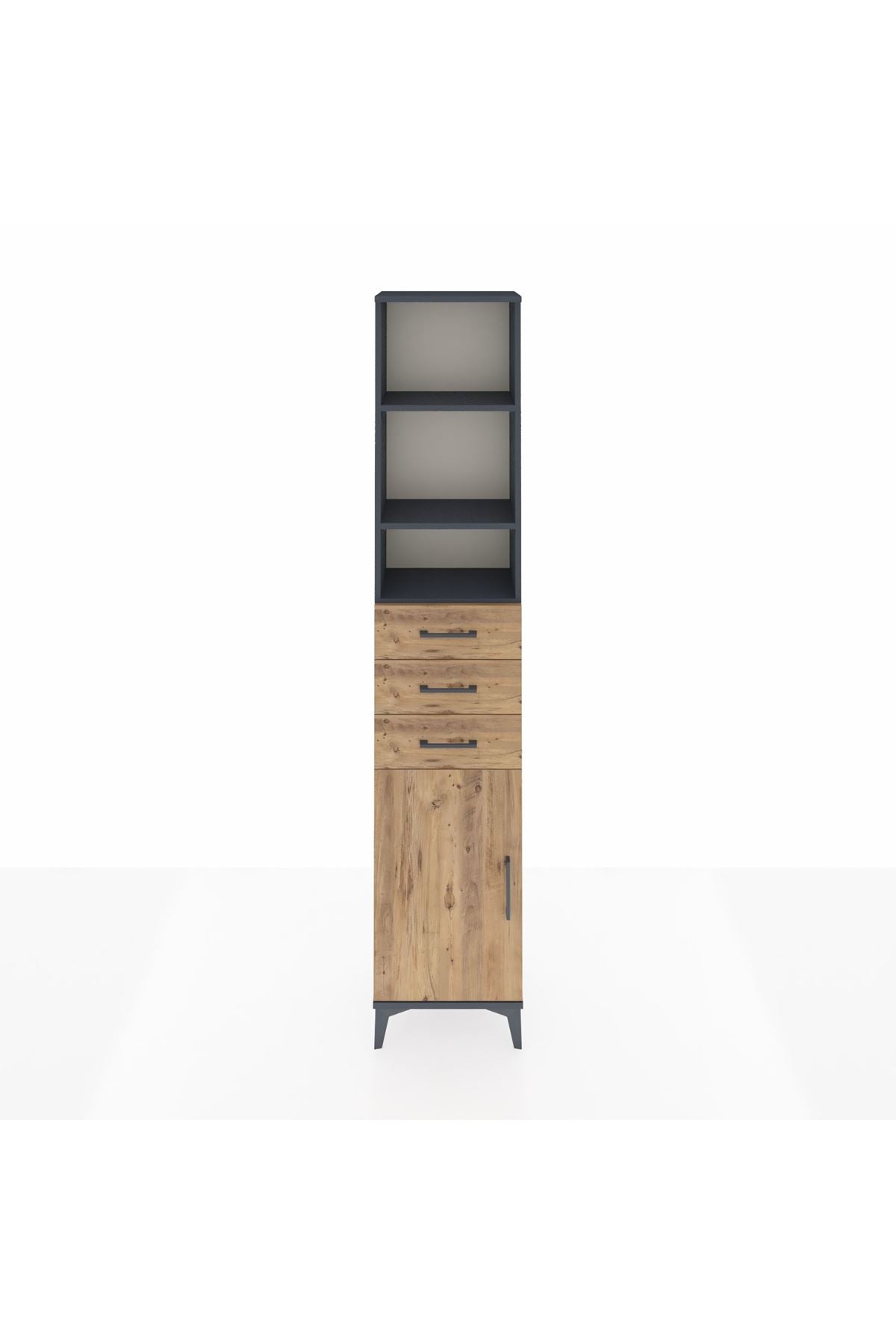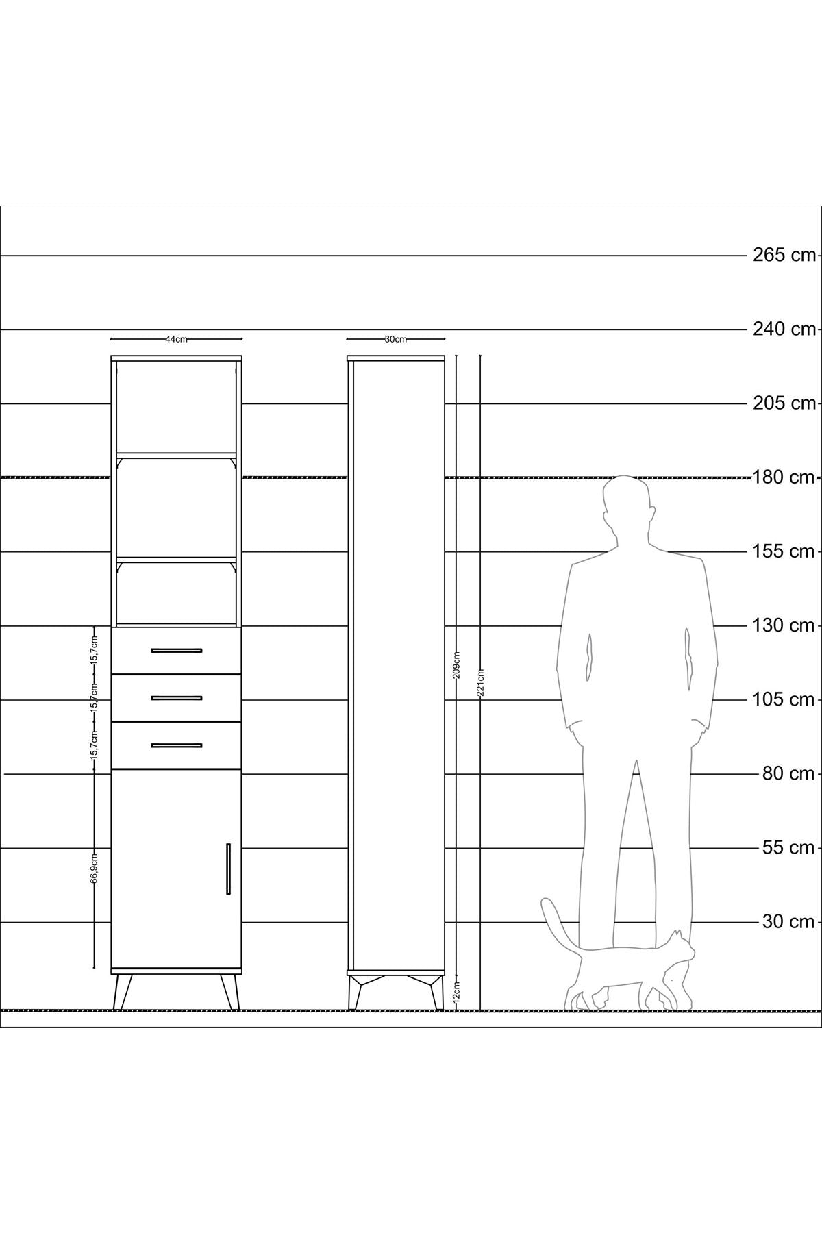 Arges Dolap 4 Raflı 3 Çekmeceli Tek Kapaklı 44x30x221 Antrasit-Çam